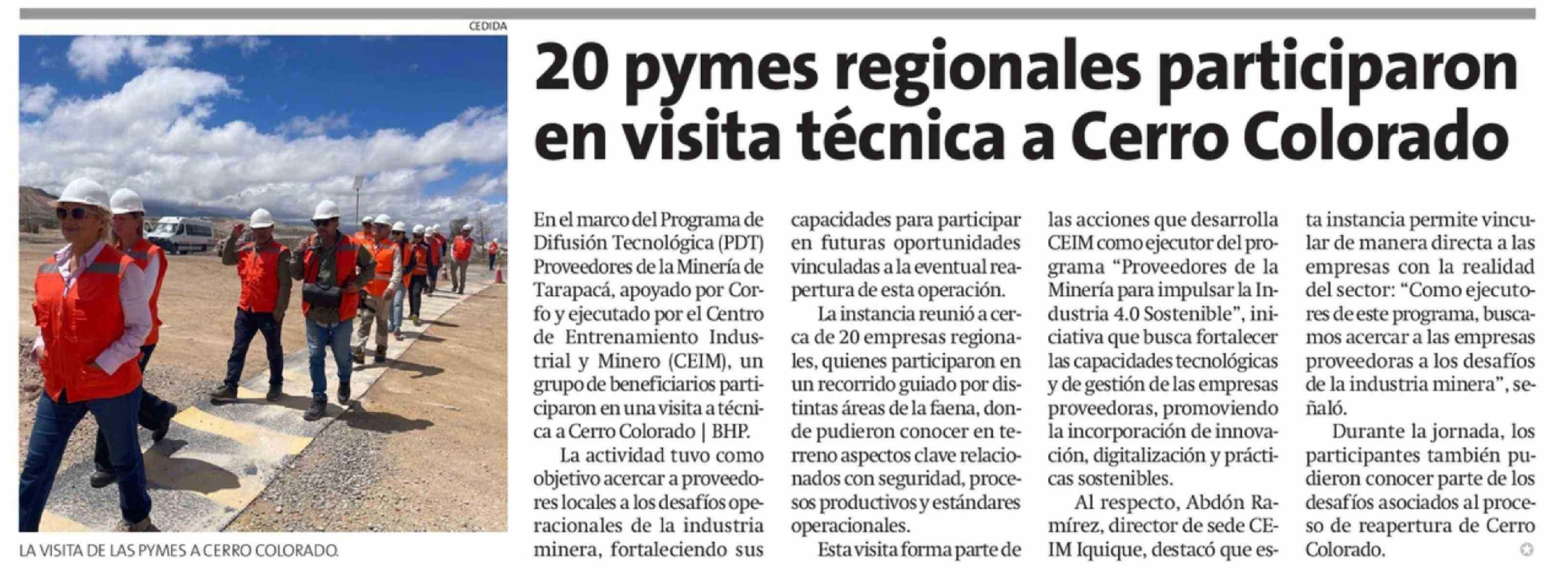 20 Pymes regionales participaron en visita técnica a Cerro Colorado 07-04-2026 La Estrella de Iquique |