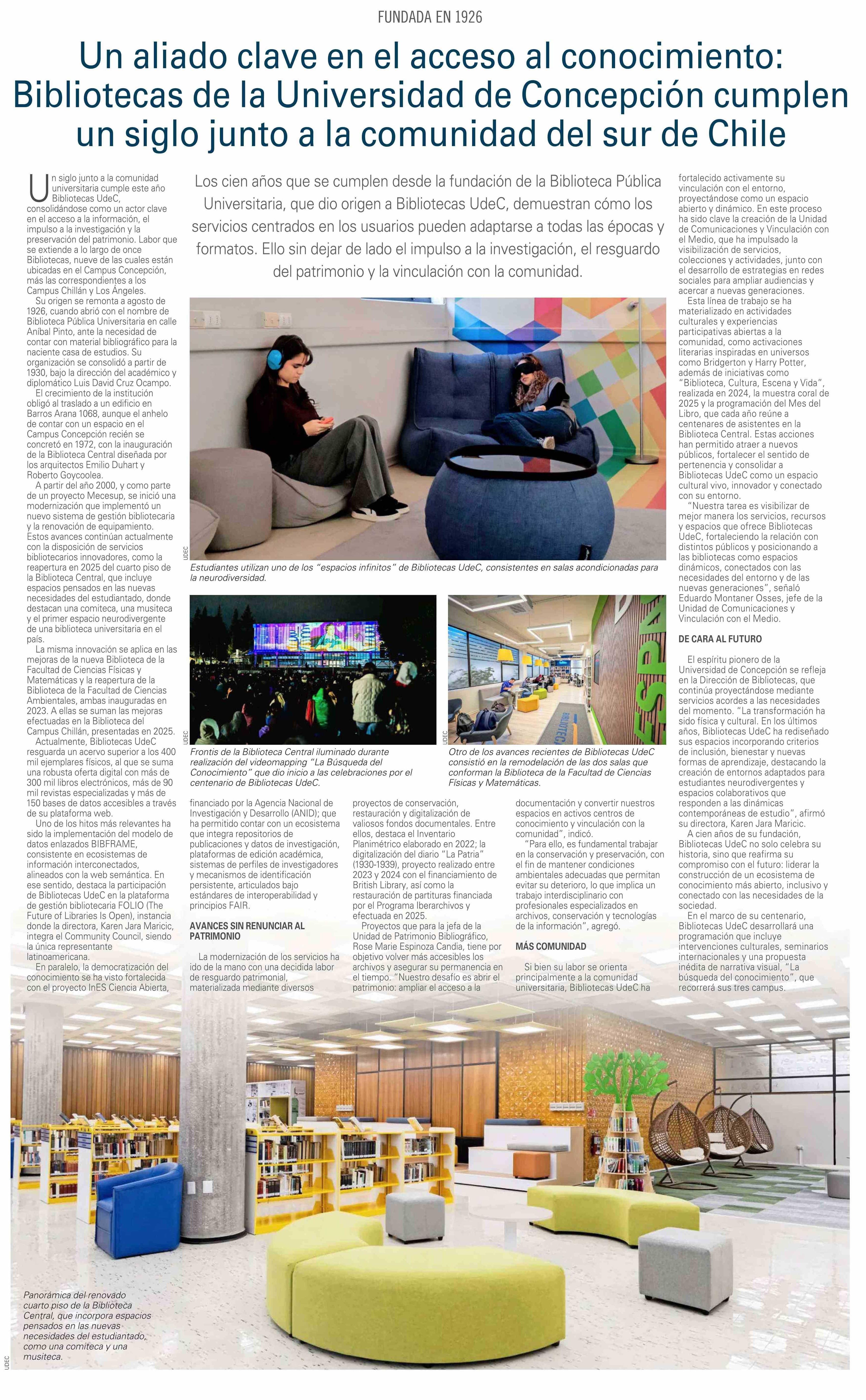 Título: Un aliado clave en el acceso al conocimiento: Bibliotecas de la Universidad de Concepción cumplen un siglo junto a la comunidad del sur de Chile
