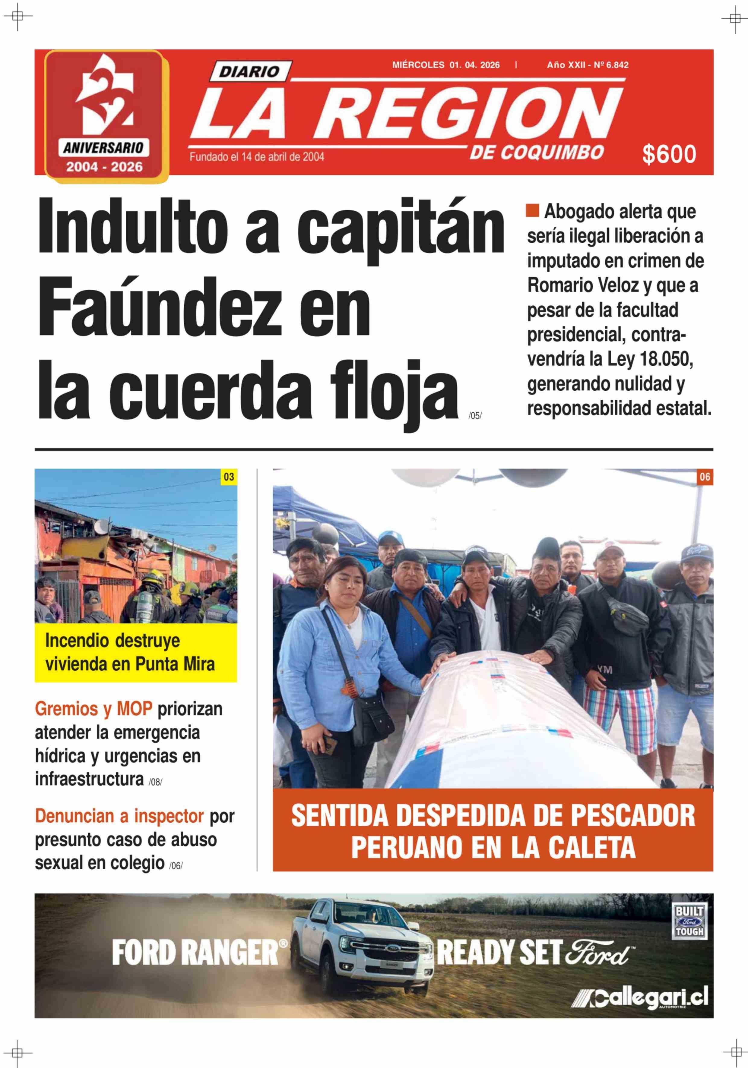 | Fecha: | 01-04-2026 | Sector: | Portada | Región: | Región de Coquimbo |
