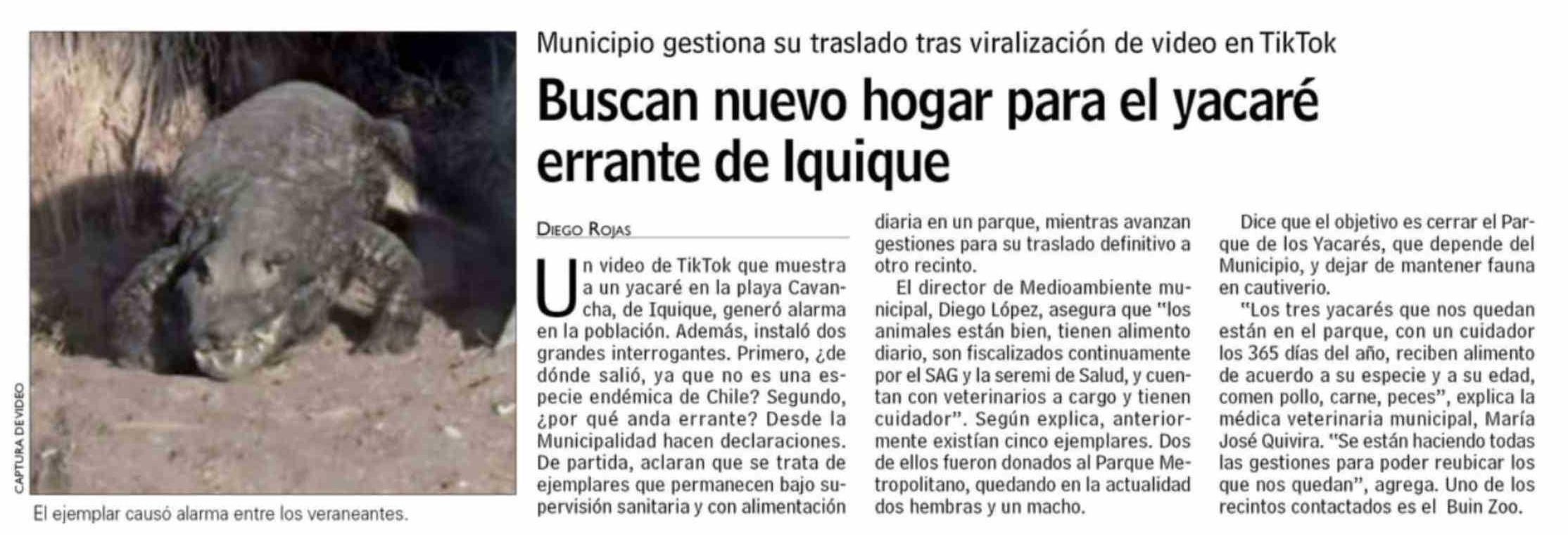 Título: Buscan nuevo hogar para el yacaré errante de Iquique