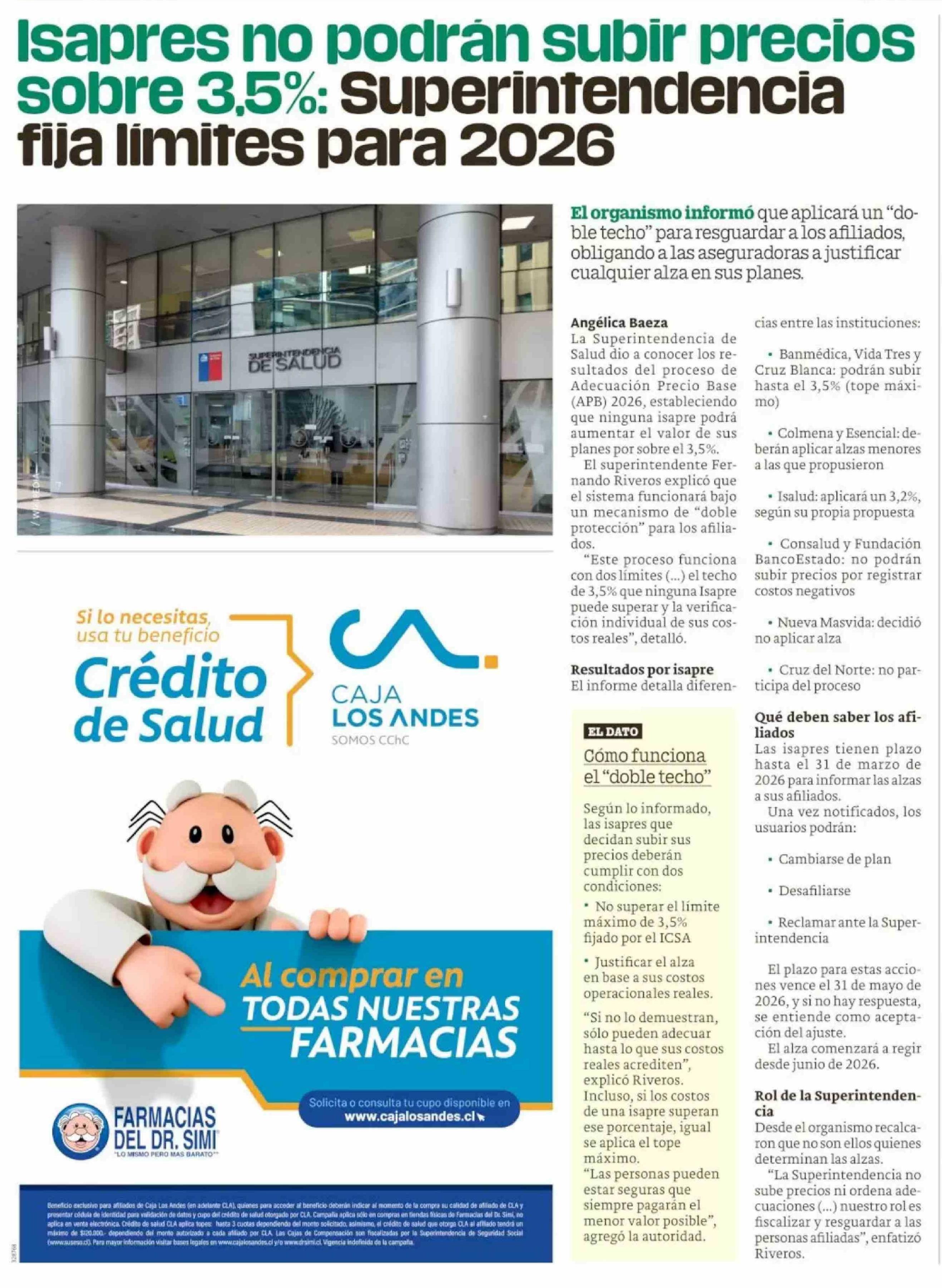 Isapres no podran subir precios sobre 3,5%: Superintendencia fija limites para 2026 01-04-2026 Publimetro |
