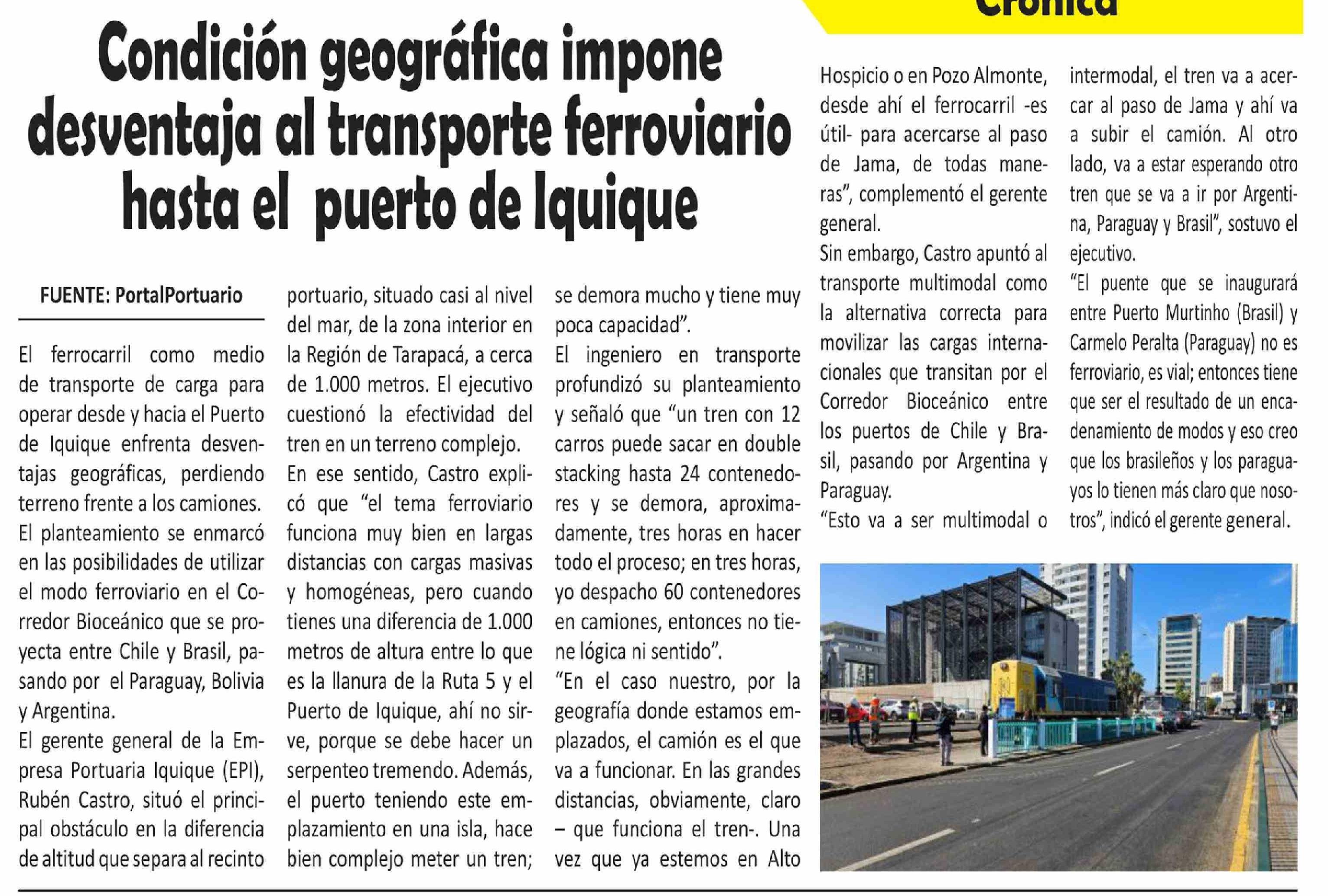 Condición geográfica impone desventaja al transporte ferroviario hasta el puerto de Iquique 07-04-2026 El Longino |