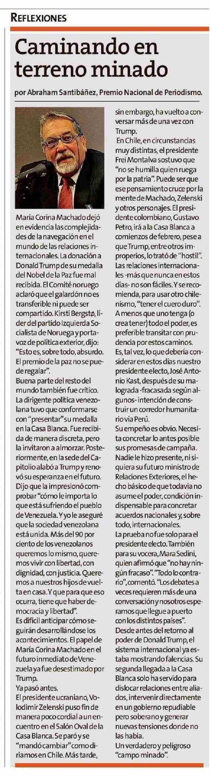 Columnas de Opinión: Caminando en terreno minado 18-01-2026 El Líder |
