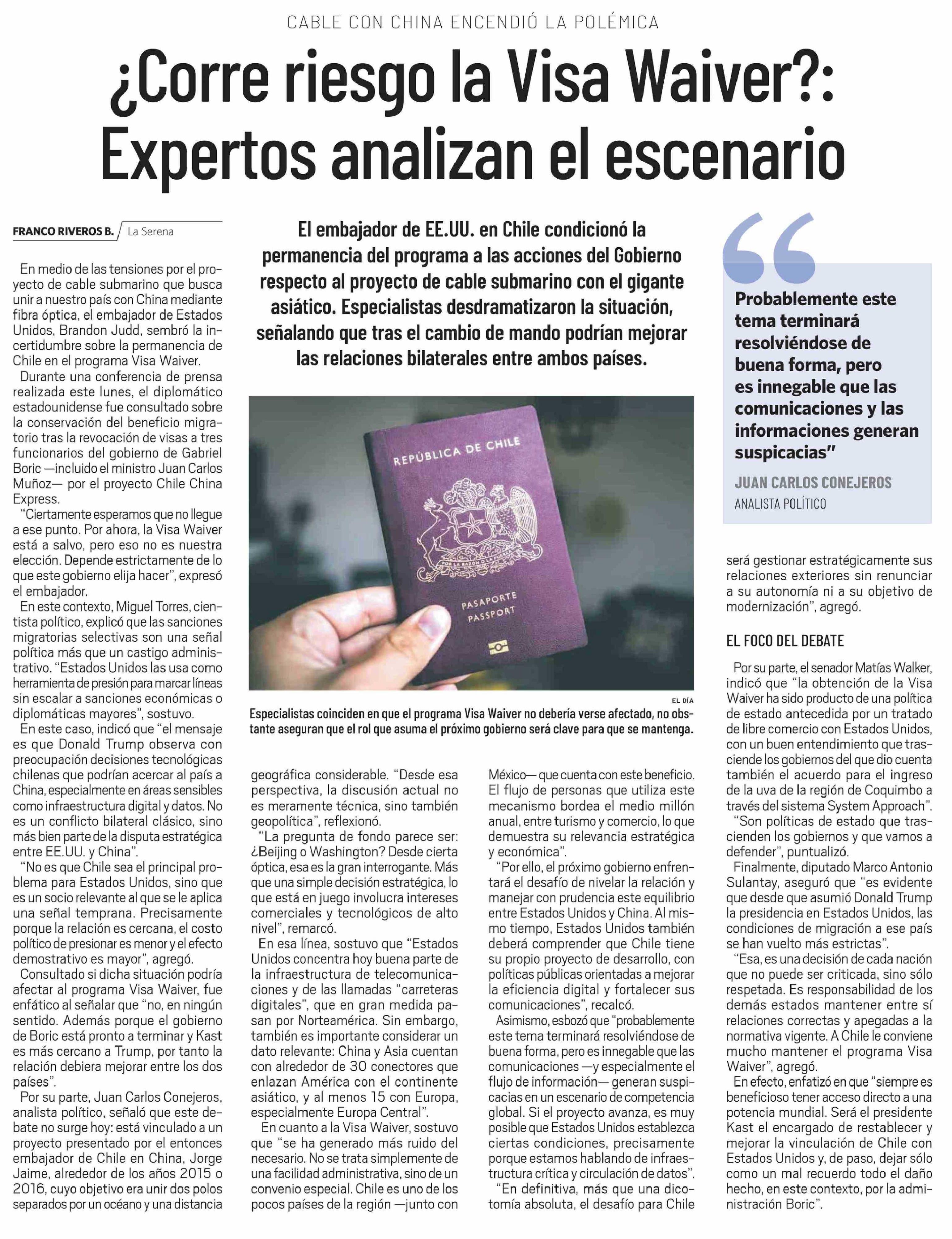 ¿Corre riesgo la Visa Waiver ?: Expertos analizan el escenario 25-02-2026 El Día |