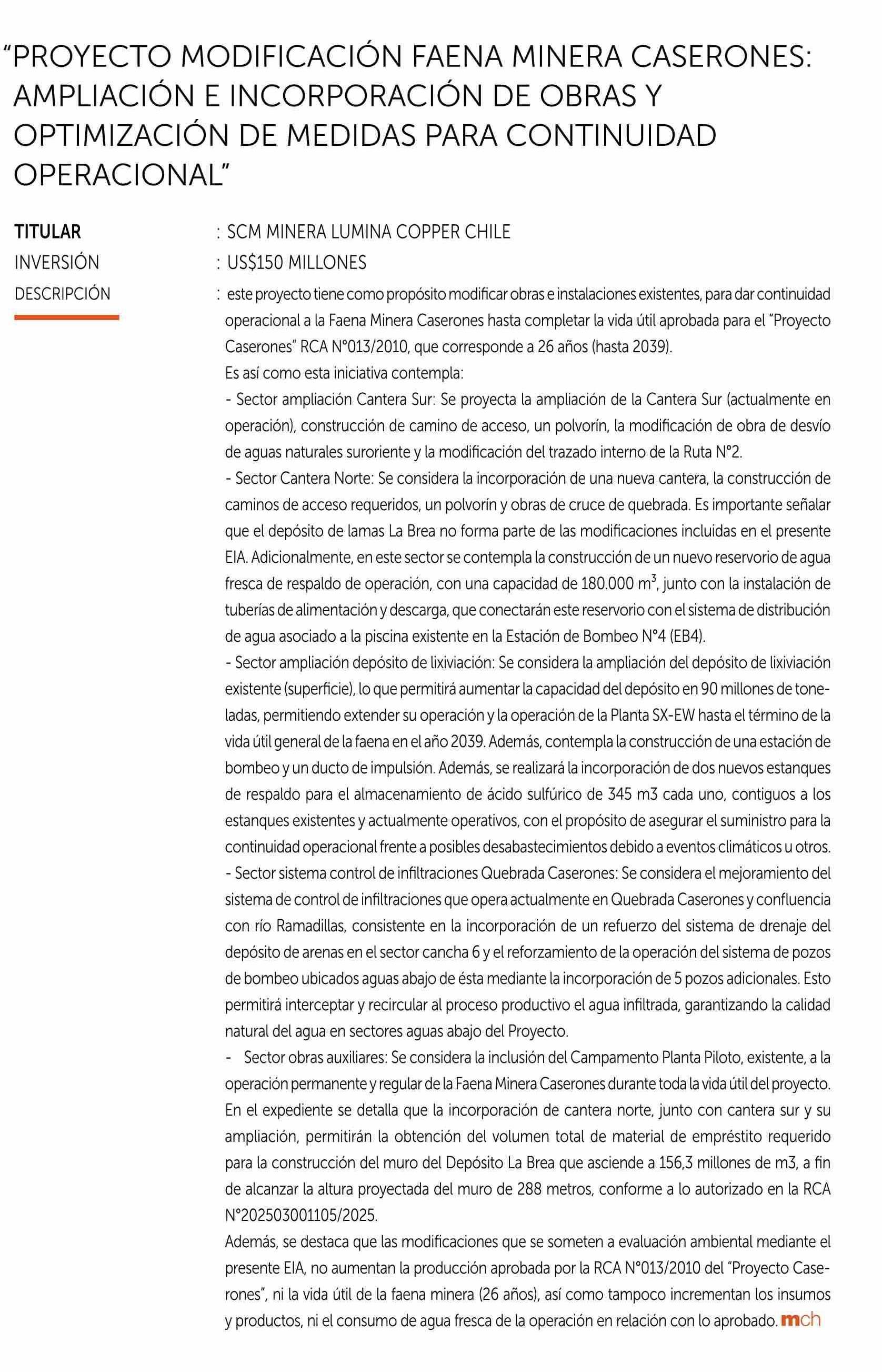 "PROYECTO MODIFICACIÓN FAENA MINERA CASERONES: AMPLIACIÓN E INCORPORACIÓN DE OBRAS Y OPTIMIZACIÓN DE MEDIDAS PARA CONTINUIDAD OPERACIONAL”