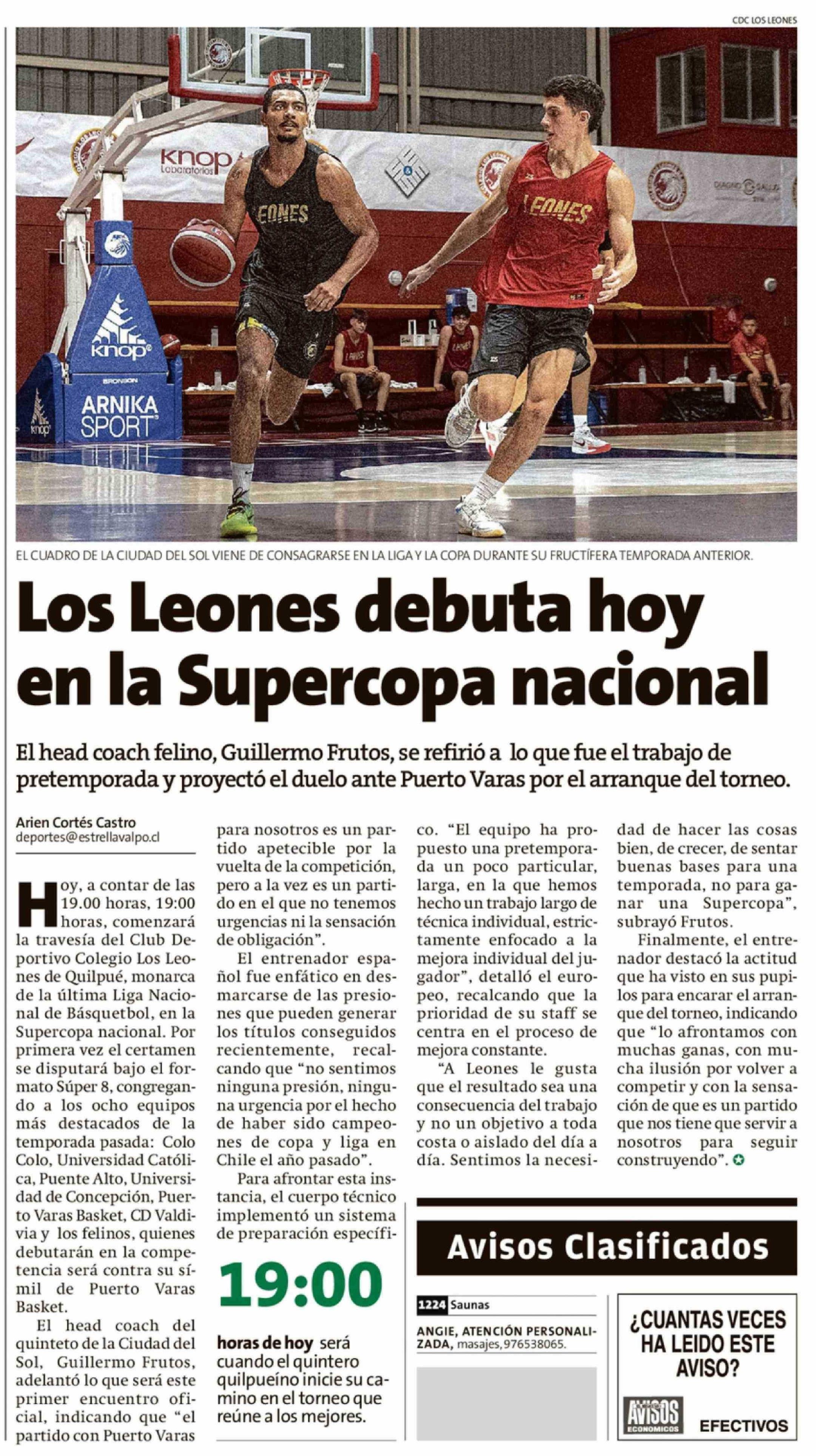 | Título: | Los Leones debuta hoy en la Supercopa nacional |