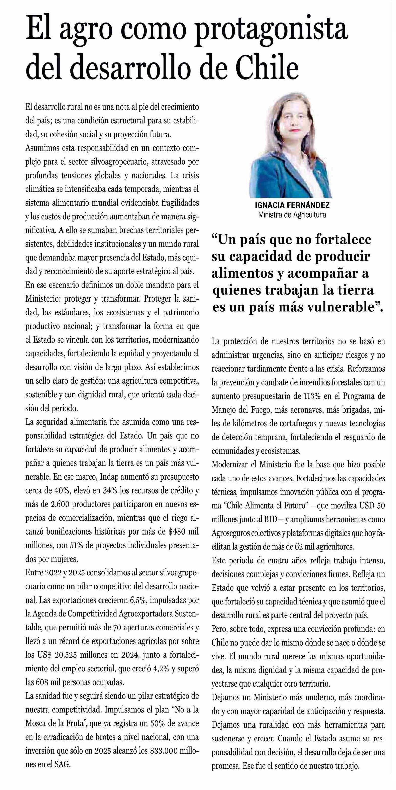 El agro como protagonista El agro como protagonista del desarrollo de Chile del desarrollo de Chile 24-02-2026 La Prensa de Curicó |