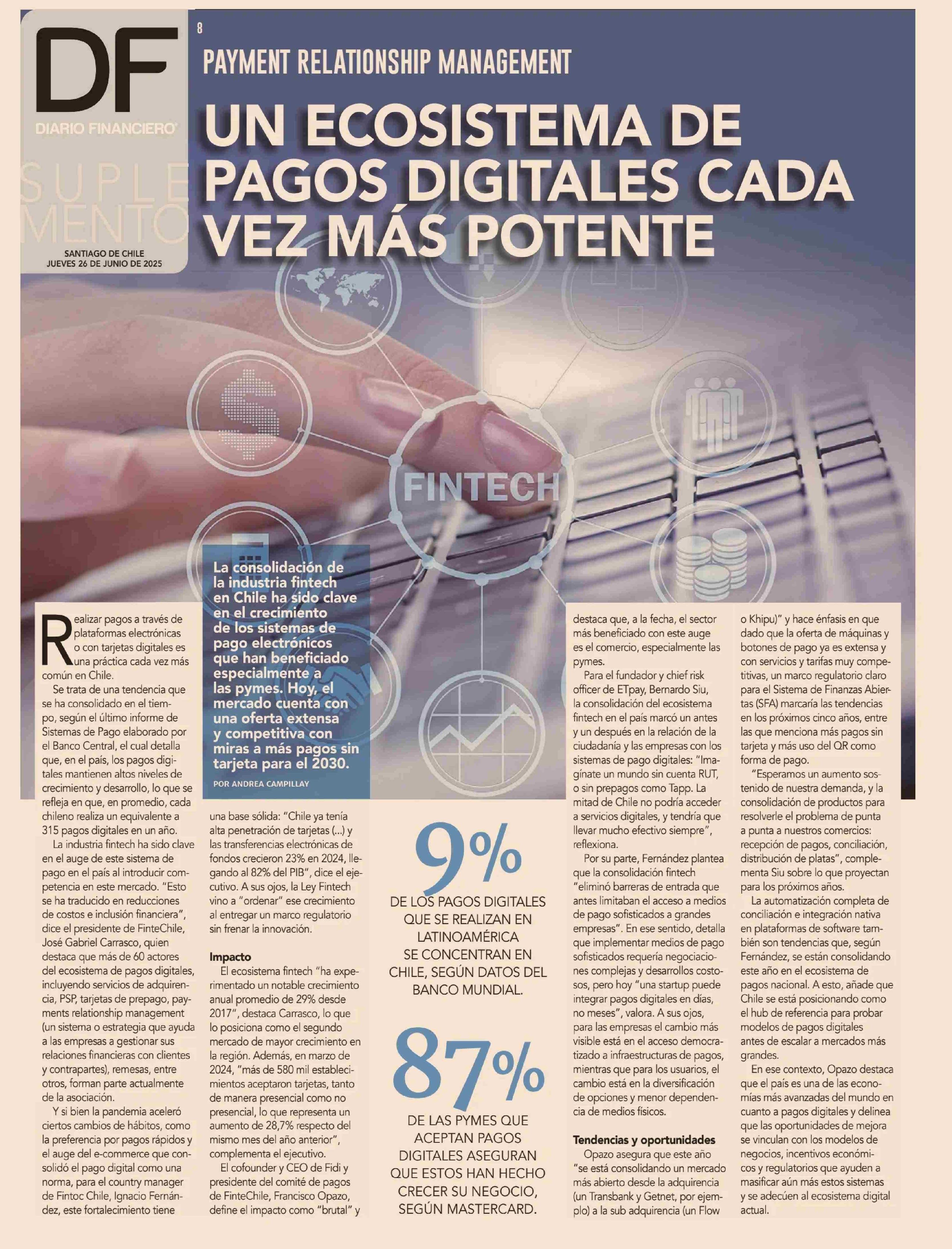 UN ECOSISTEMA DE PAGOS DIGITALES CADA VEZ MÁS POTENTE 26-06-2025 Diario Financiero |