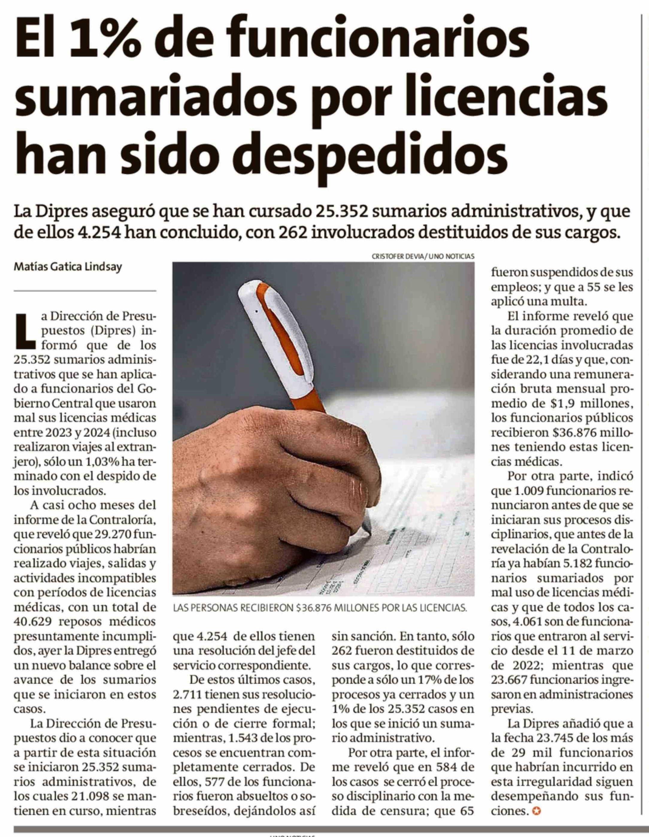 | Título: | El 1% de funcionarios sumariados por licencias han sido despedidos |