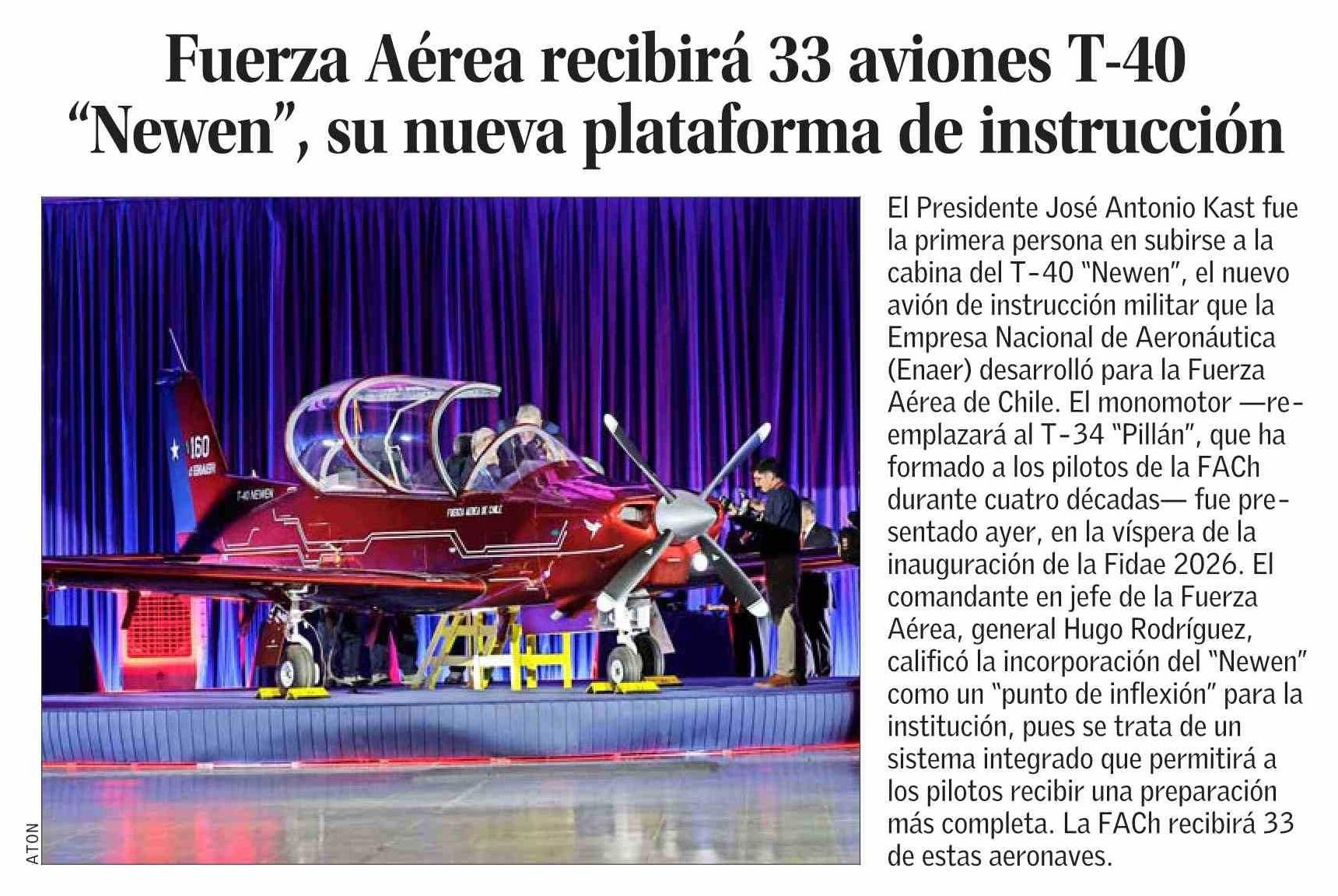 Título: Fuerza Aérea recibirá 33 aviones T-40 “Newen”, su nueva plataforma de instrucción
