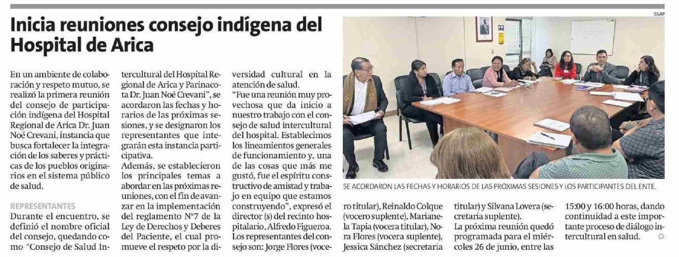 | Título: | Inicia reuniones consejo indígena del Hospital de Arica |