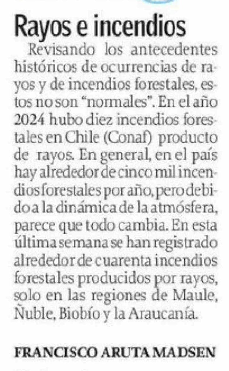 Cartas: Rayos e incendios Revisando los antecedentes 03-02-2026 El Sur |