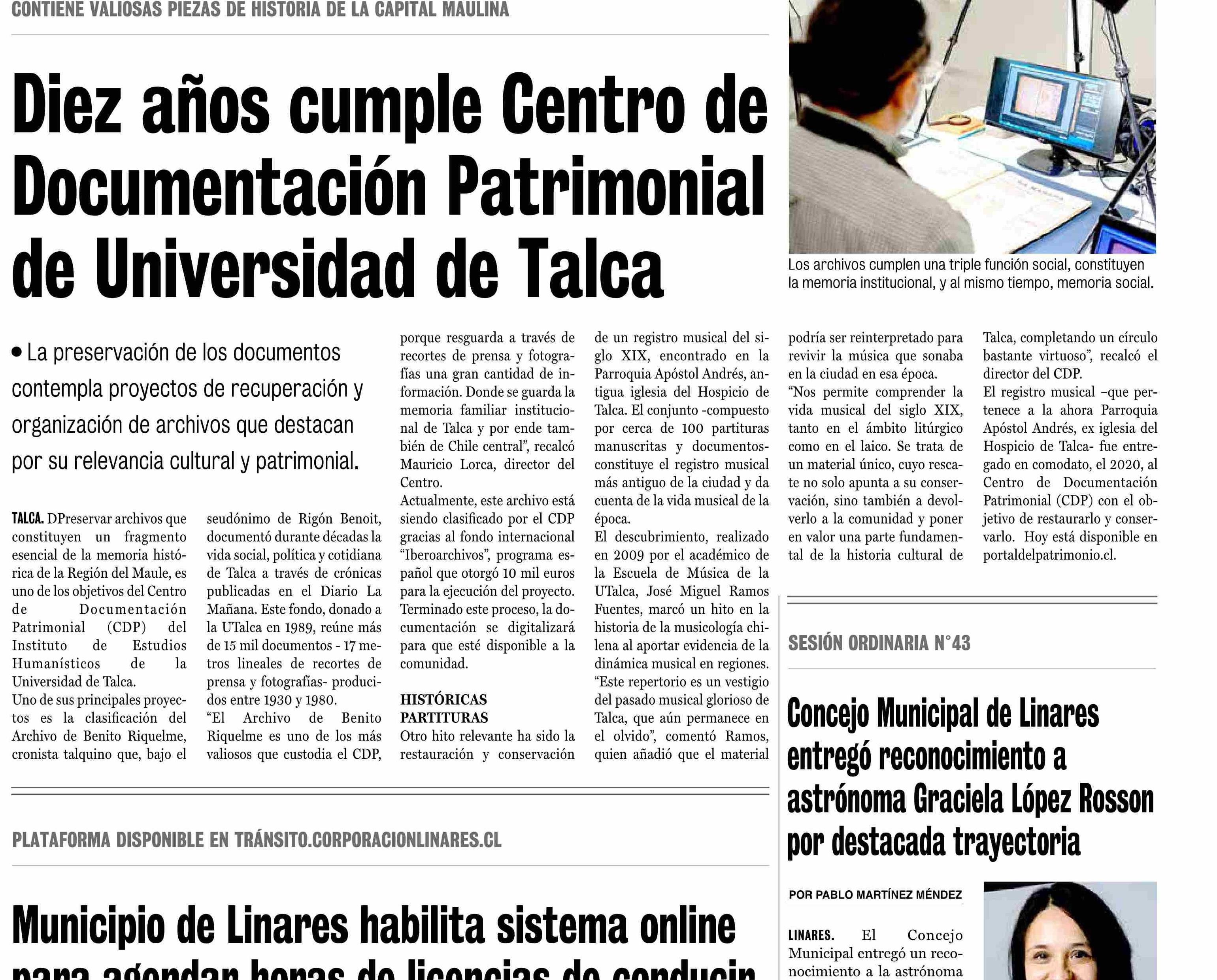 Título: Diez años cumple Centro de Documentación Patrimonial de Universidad de Talca