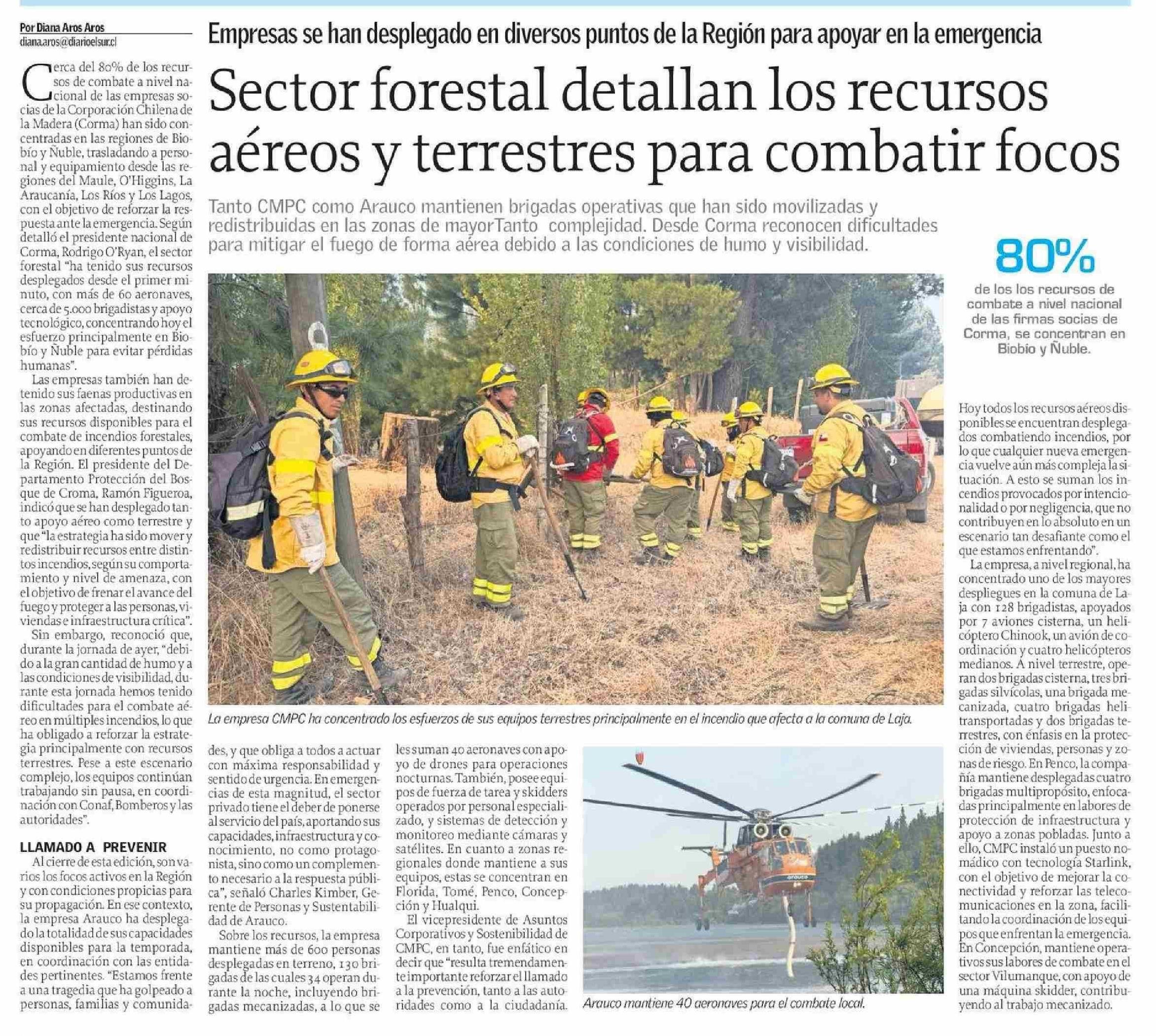 Sector forestal detallan los recursos aéreos y terrestres para combatir focos 20-01-2026 El Sur |