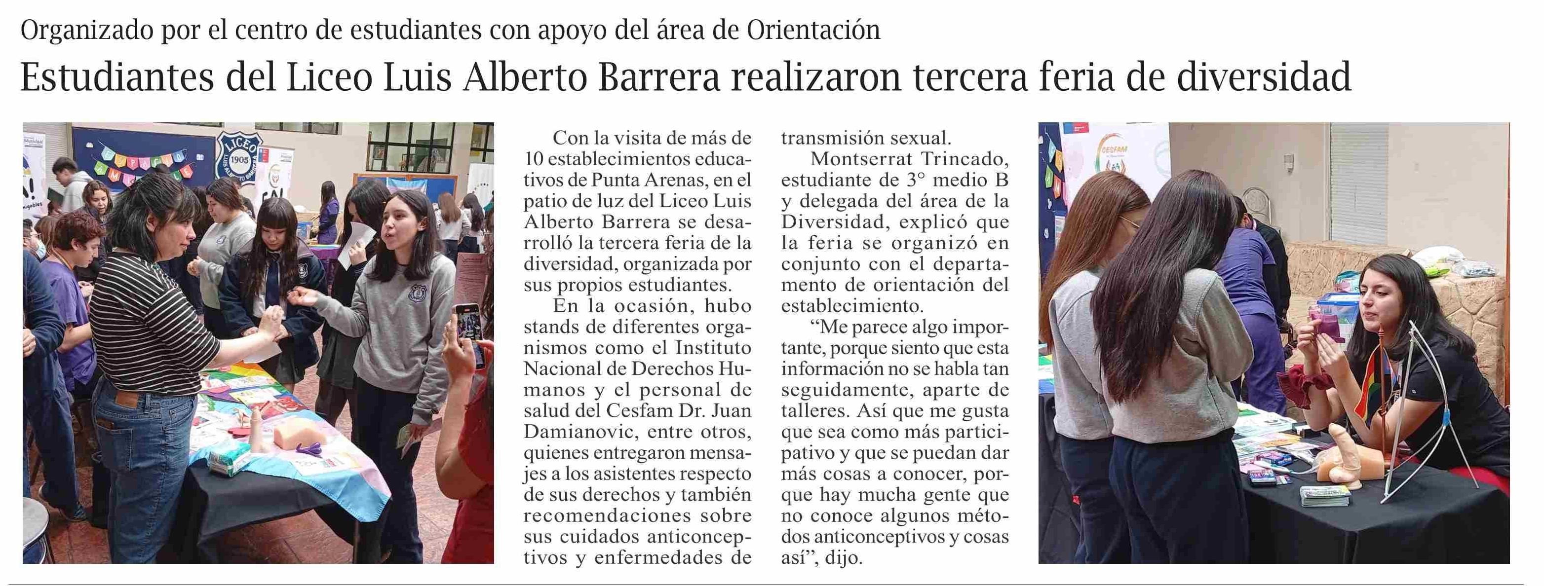 Estudiantes del Liceo Luis Alberto Barrera realizaron tercera feria de diversidad 12-06-2025 El Pingüino |