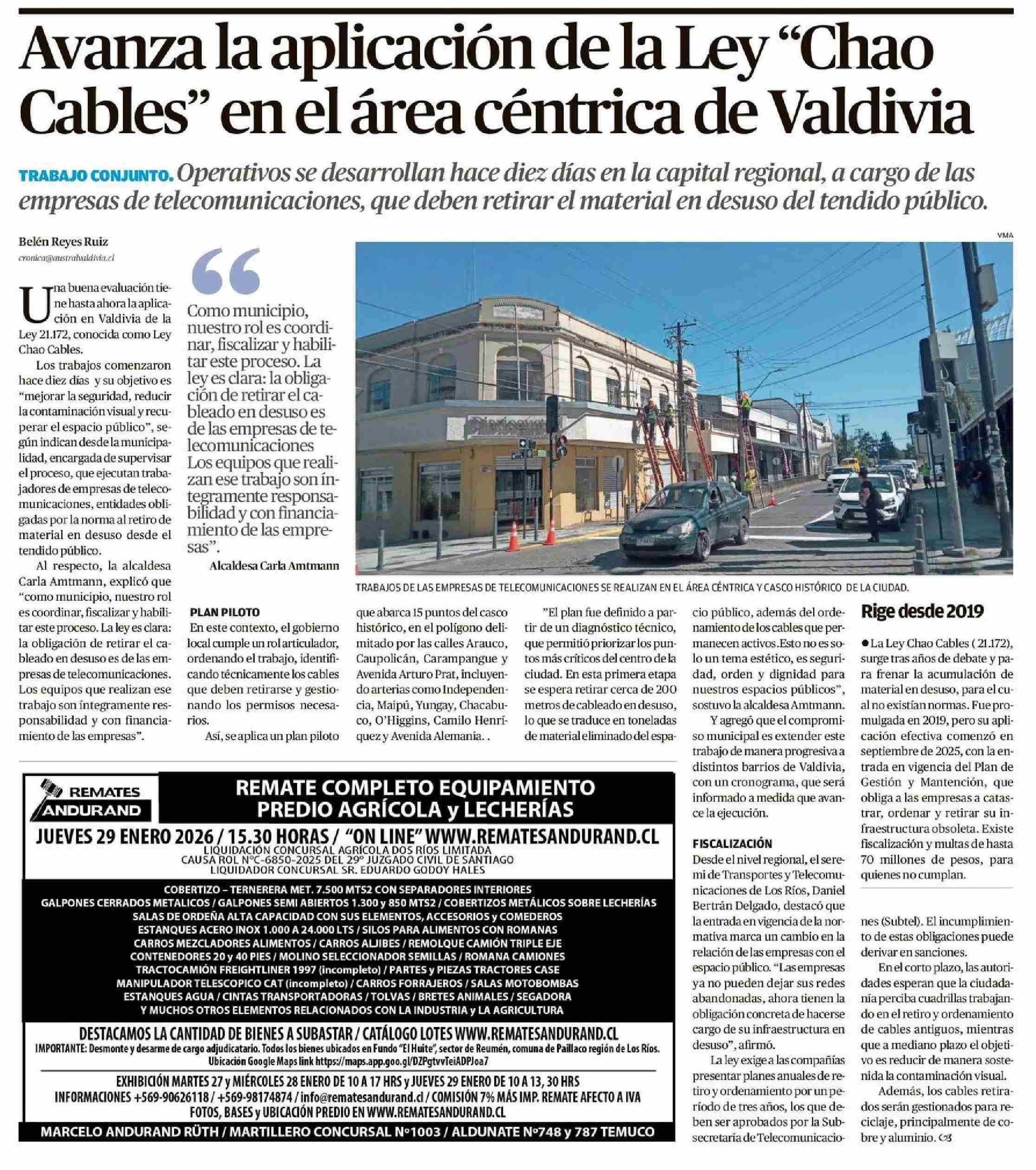 Avanza la aplicación de la Ley "Chao Cables" en el área céntrica de Valdivia 25-01-2026 Diario Austral Región de Los Ríos |