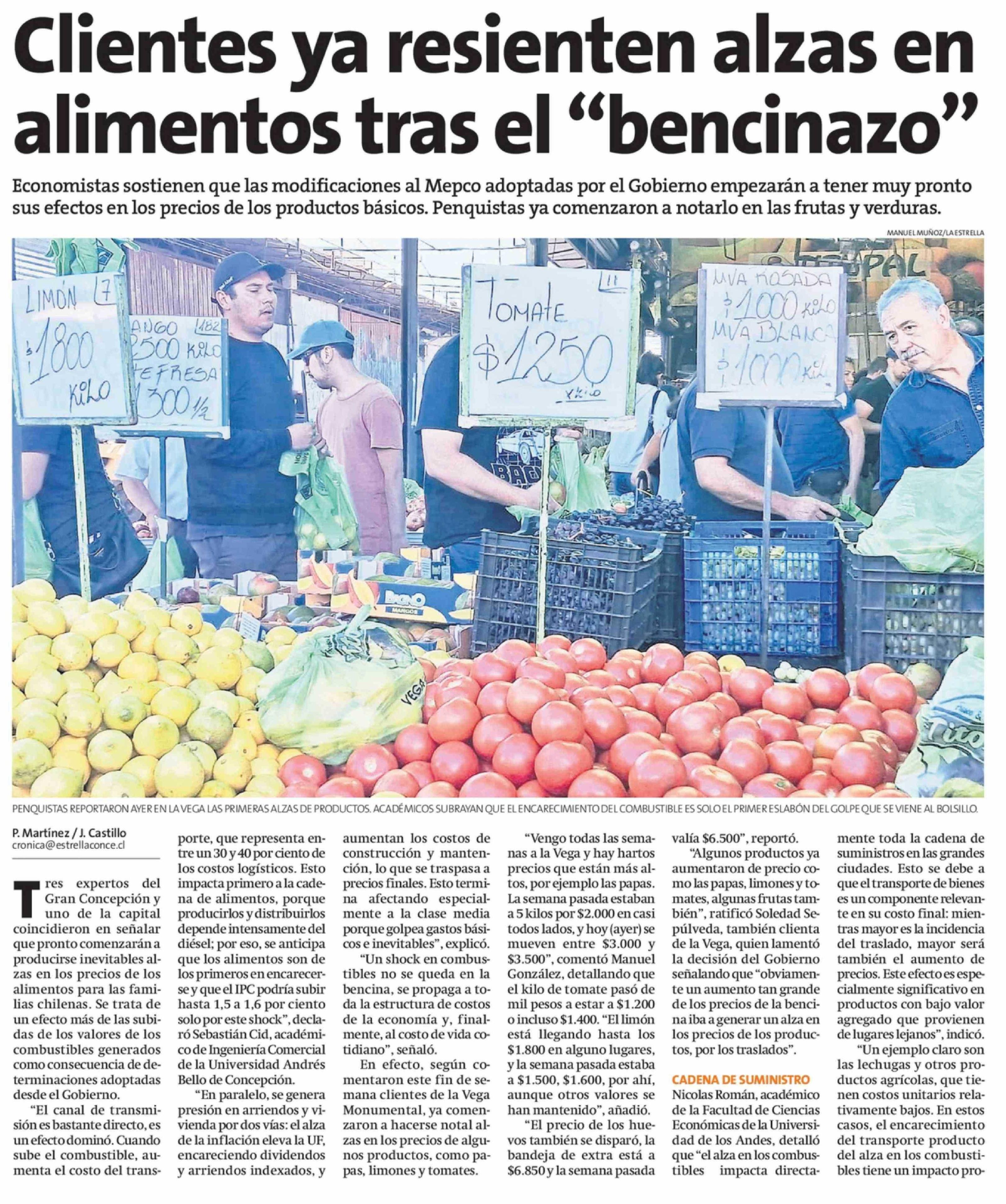 Título: Clientes ya resienten alzas en alimentos tras el "bencinazo"