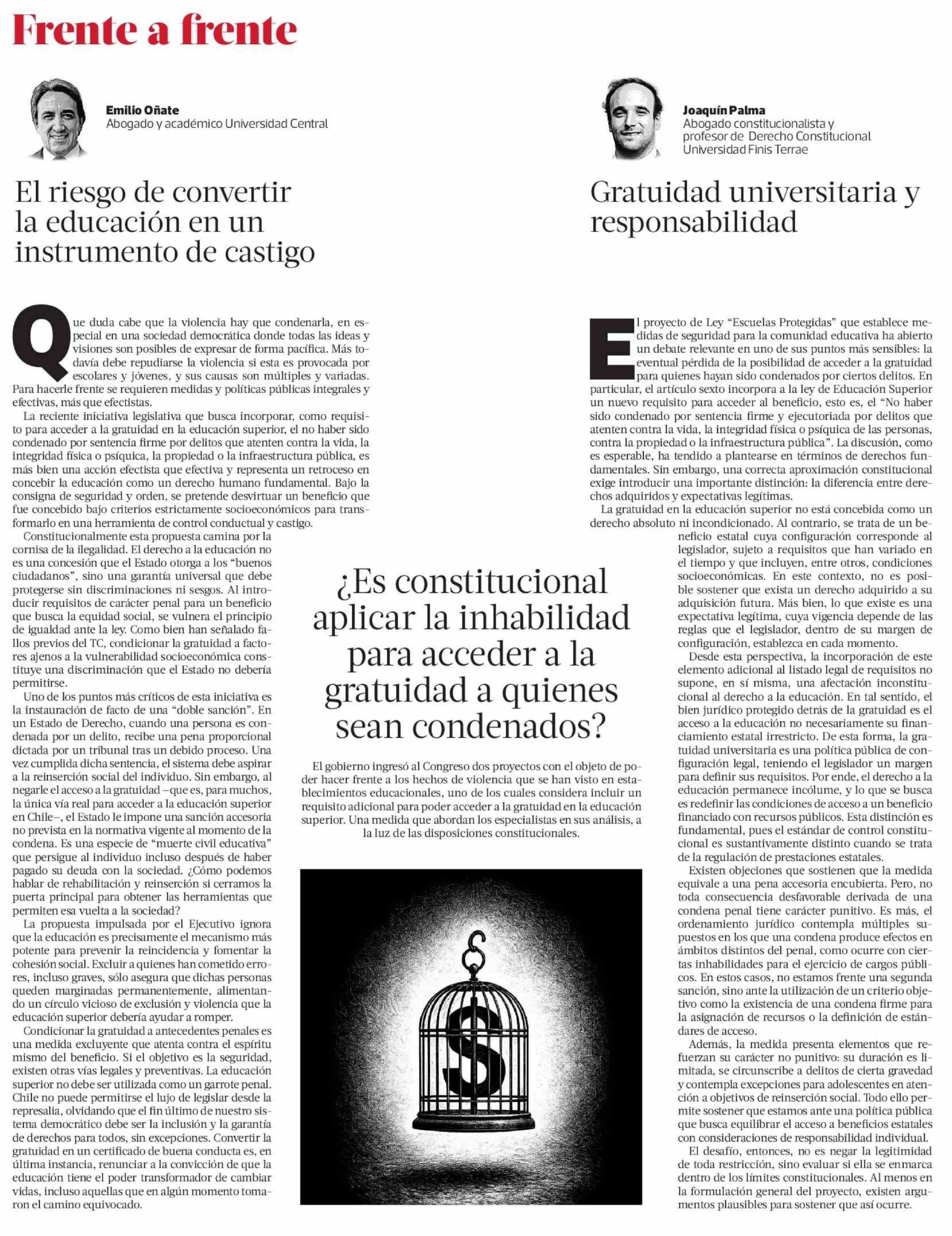 ¿Es constitucional aplicar la inhabilidad para acceder a la gratuidad a quienes sean condenados? 11-04-2026 La Tercera |
