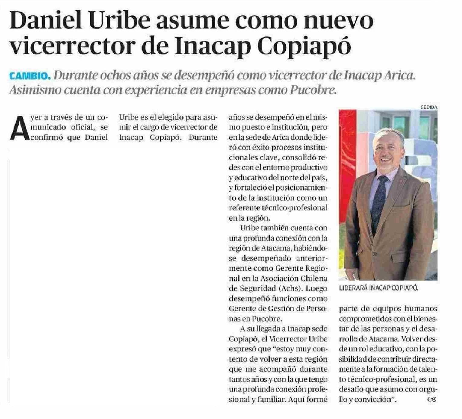 Título: Daniel Uribe asume como nuevo vicerrector de Inacap Copiapó
