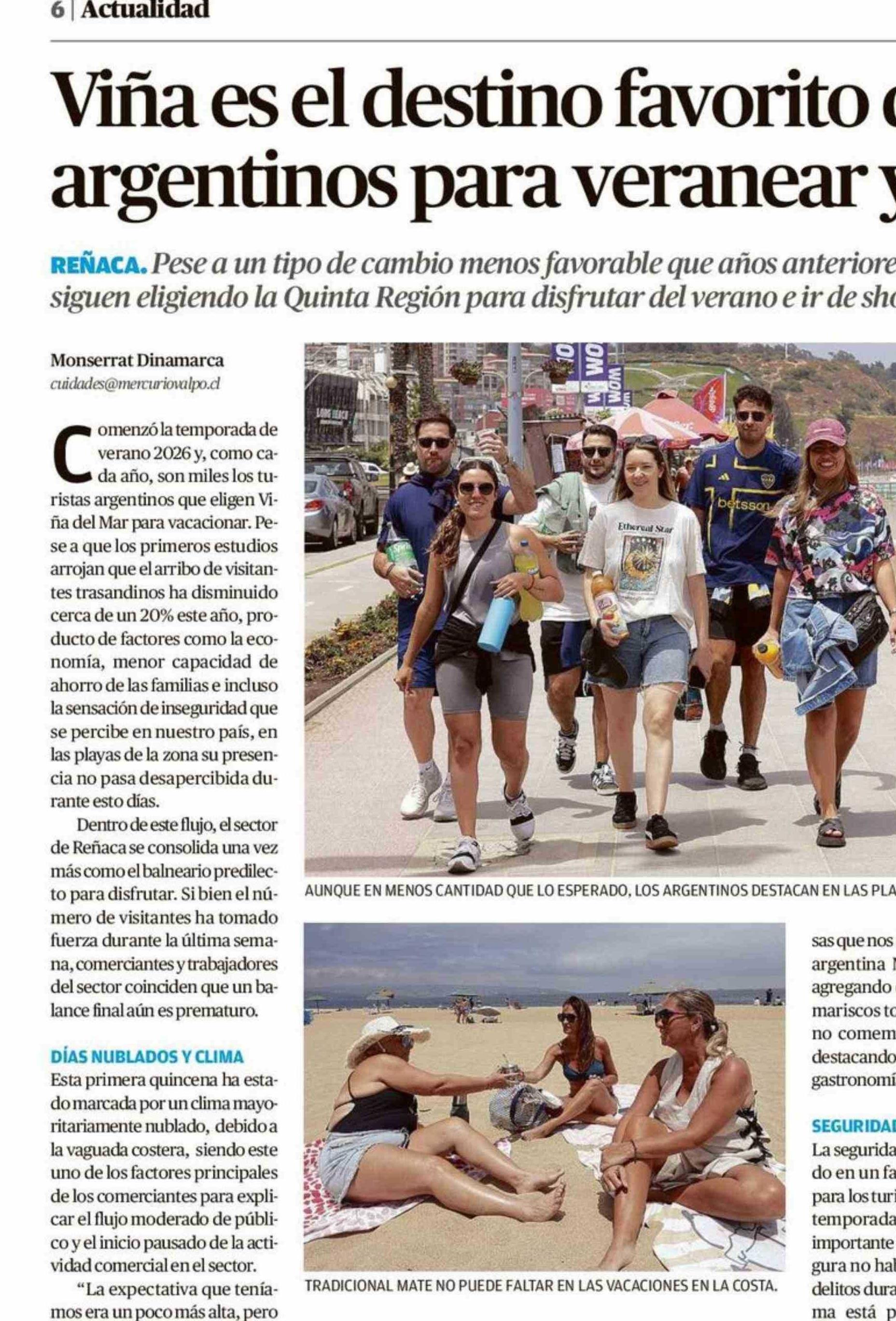 Viña es el destino favorito de los argentinos para veranear y comprar 15-01-2026 El Mercurio de Valparaíso |