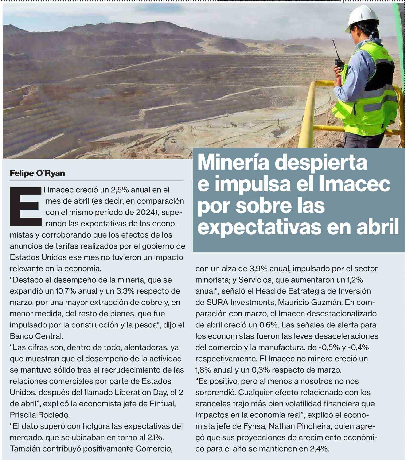 Minería despierta e impulsa el Imacec por sobre las expectativas en abril 02-06-2025 La Segunda |