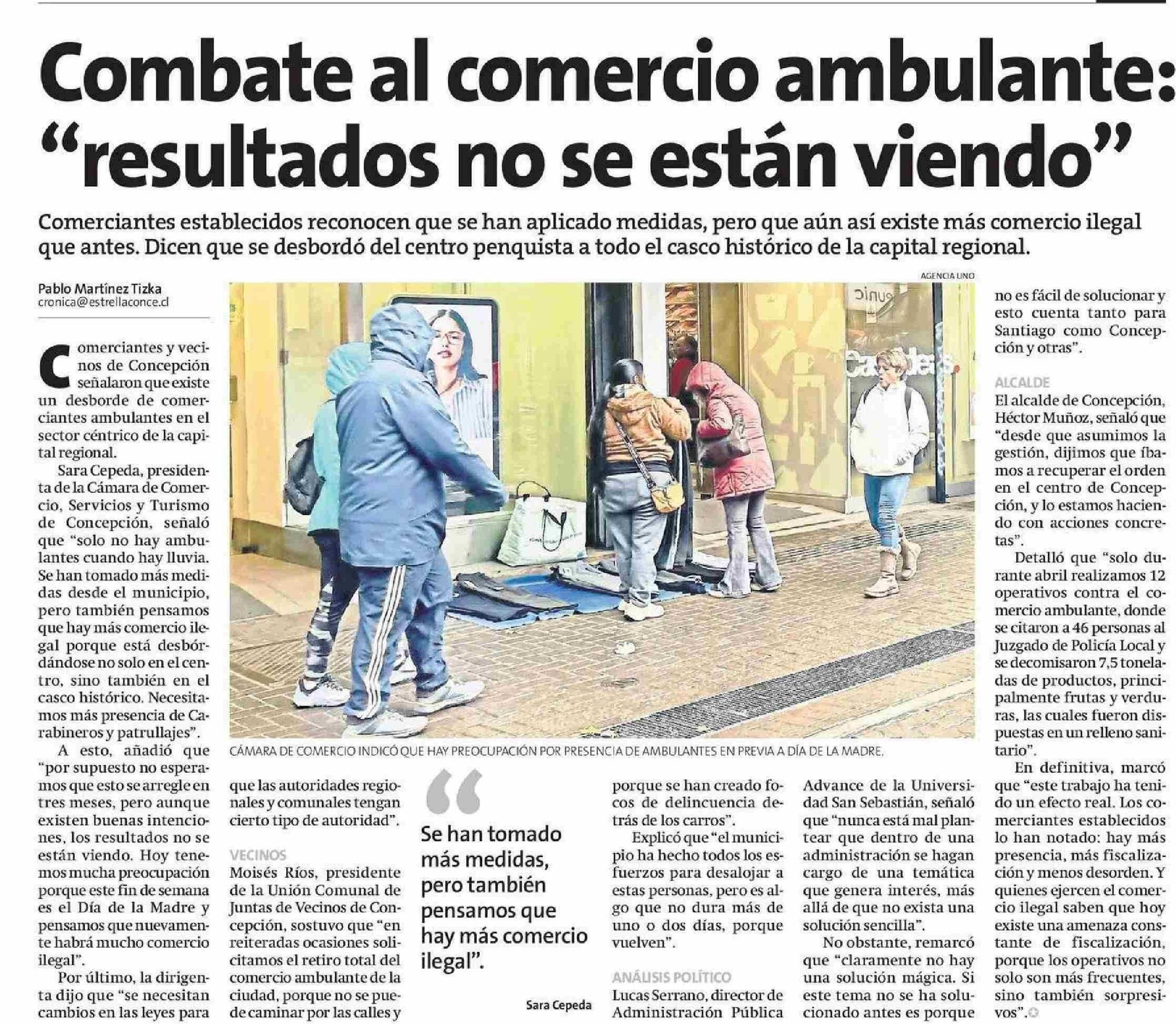 Combate al comercio ambulante: “resultados no se están viendo” 07-05-2025 La Estrella de Concepción |