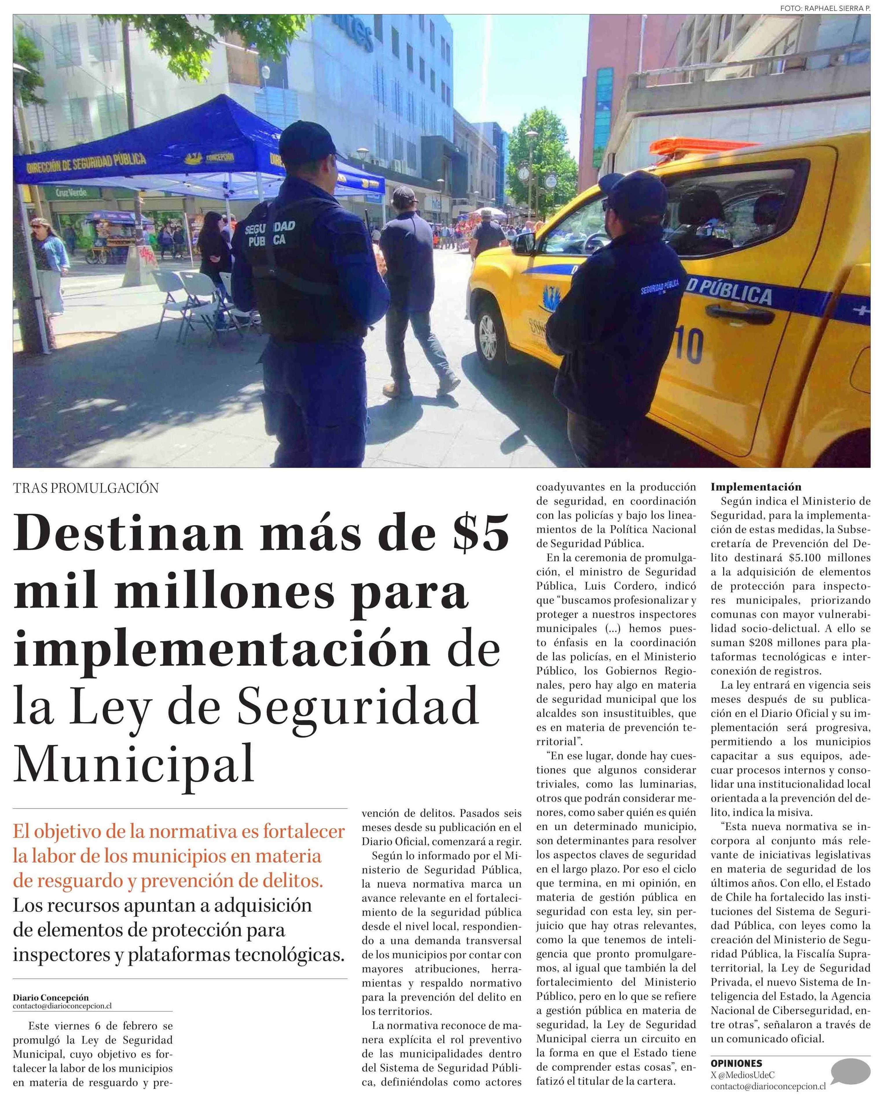 Destinan más de $5 mil millones para implementación de la Ley de Seguridad Municipal 07-02-2026 Diario Concepción |