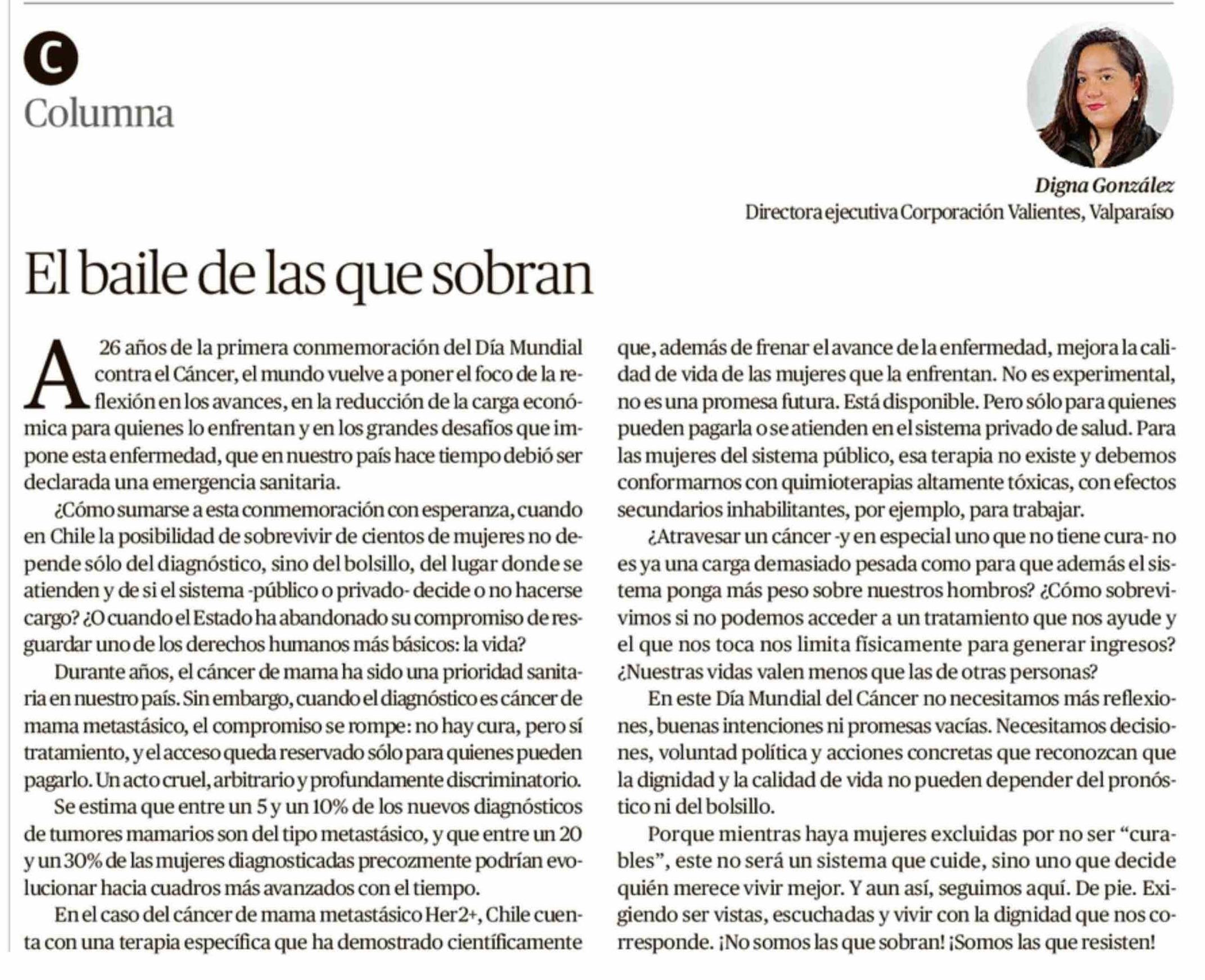 Columnas de Opinión: El baile de las que sobran 08-02-2026 El Mercurio de Valparaíso |