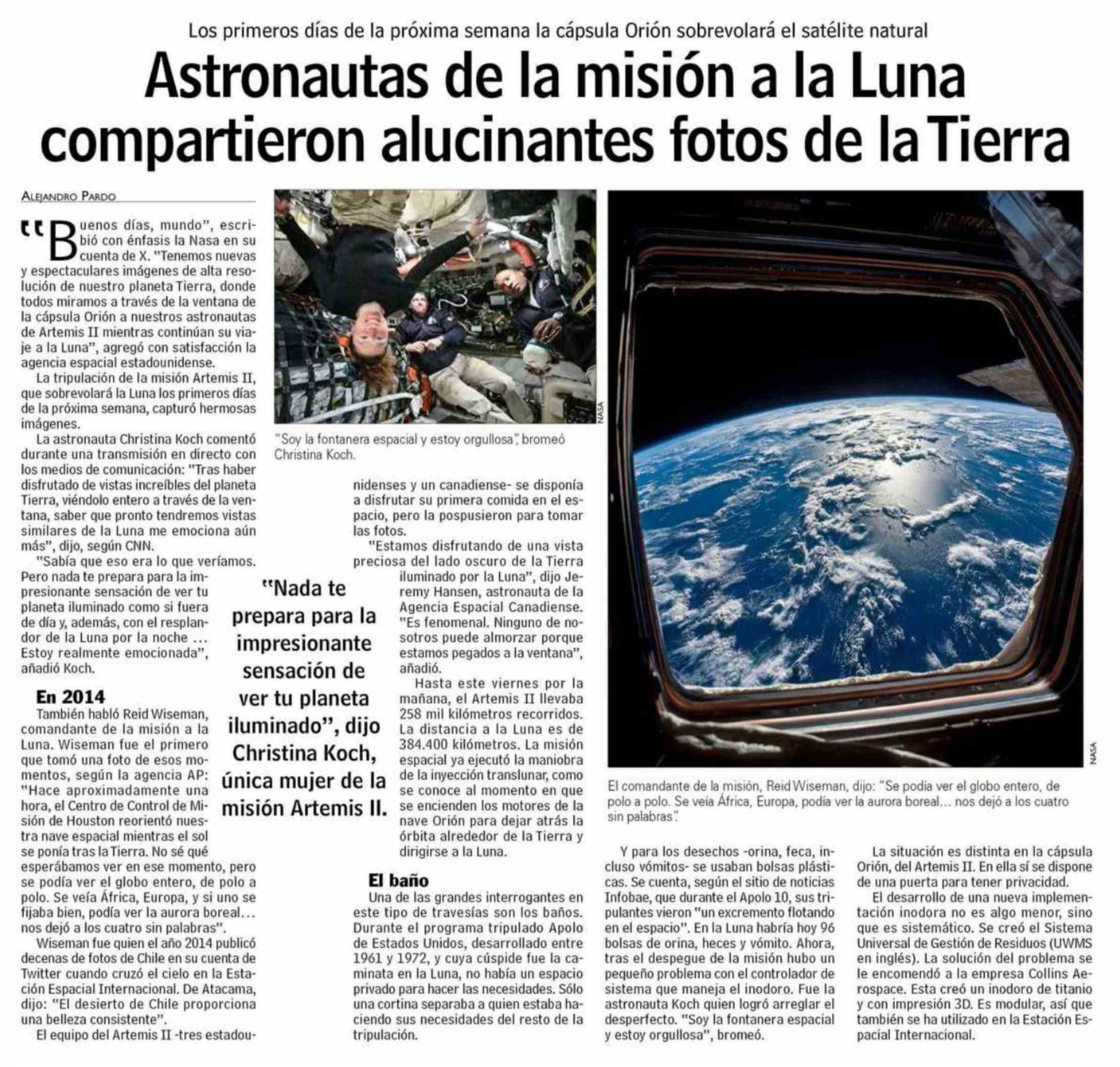 Astronautas de la misión a la Luna compartieron alucinantes fotos de la Tierra 04-04-2026 Las Últimas Noticias |