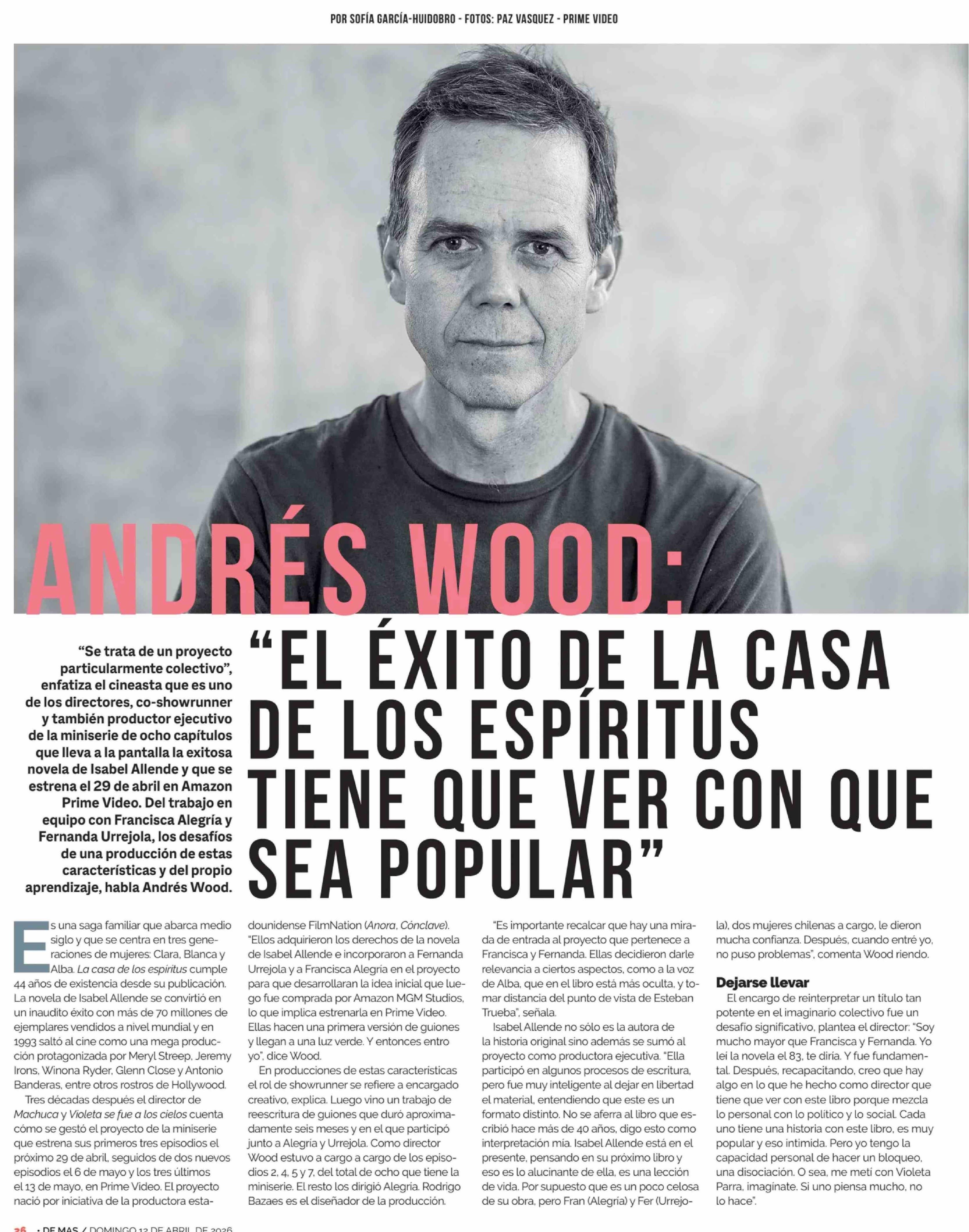 ANDRÉS WOOD: "EL ÉXITO DE LA CASA DE LOS ESPÍRITUS TIENE QUE VER CON QUE SEA POPULAR" 12-04-2026 Diario Financiero |