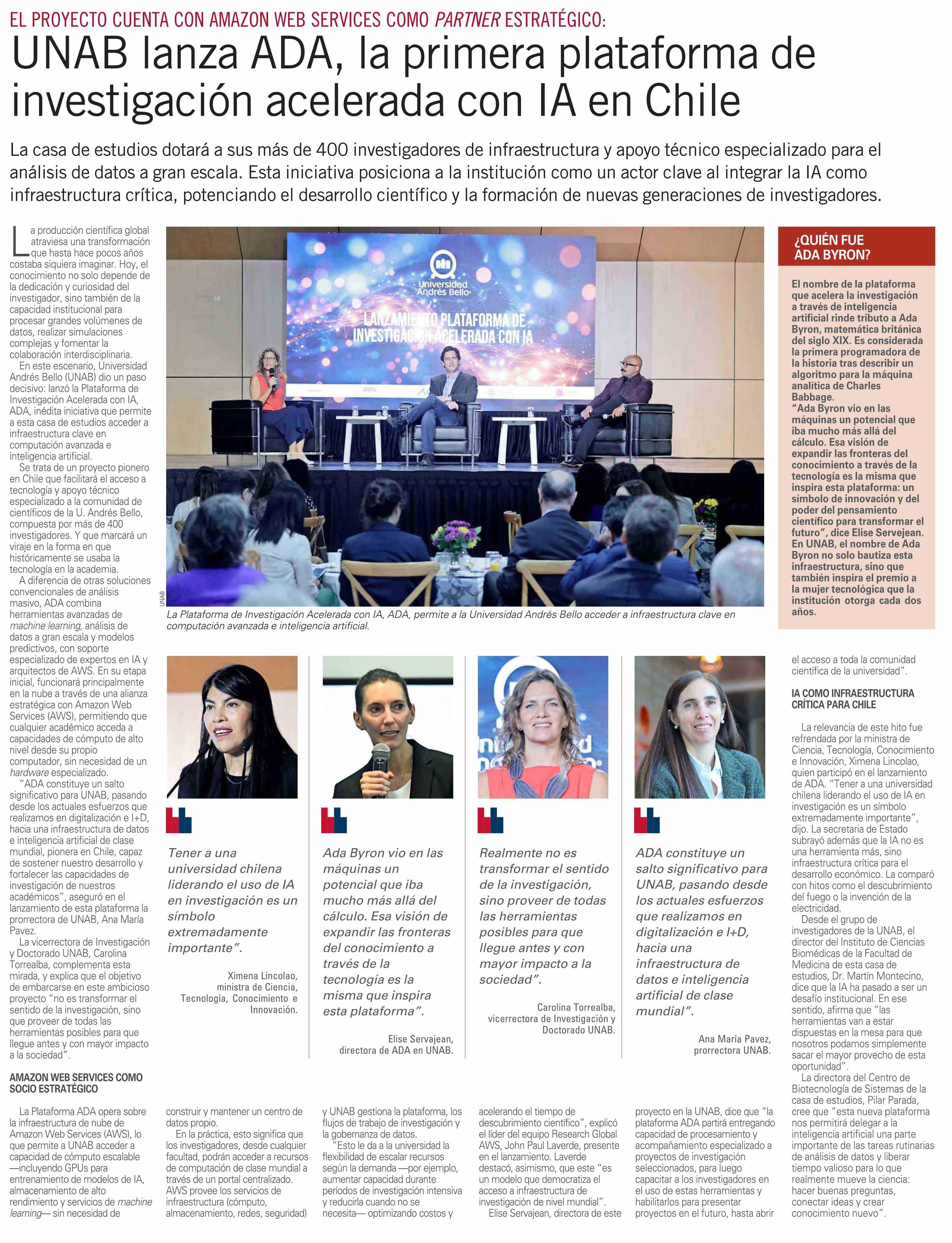 Título: UNAB lanza ADA, la primera plataforma de investigación acelerada con IA en Chile
