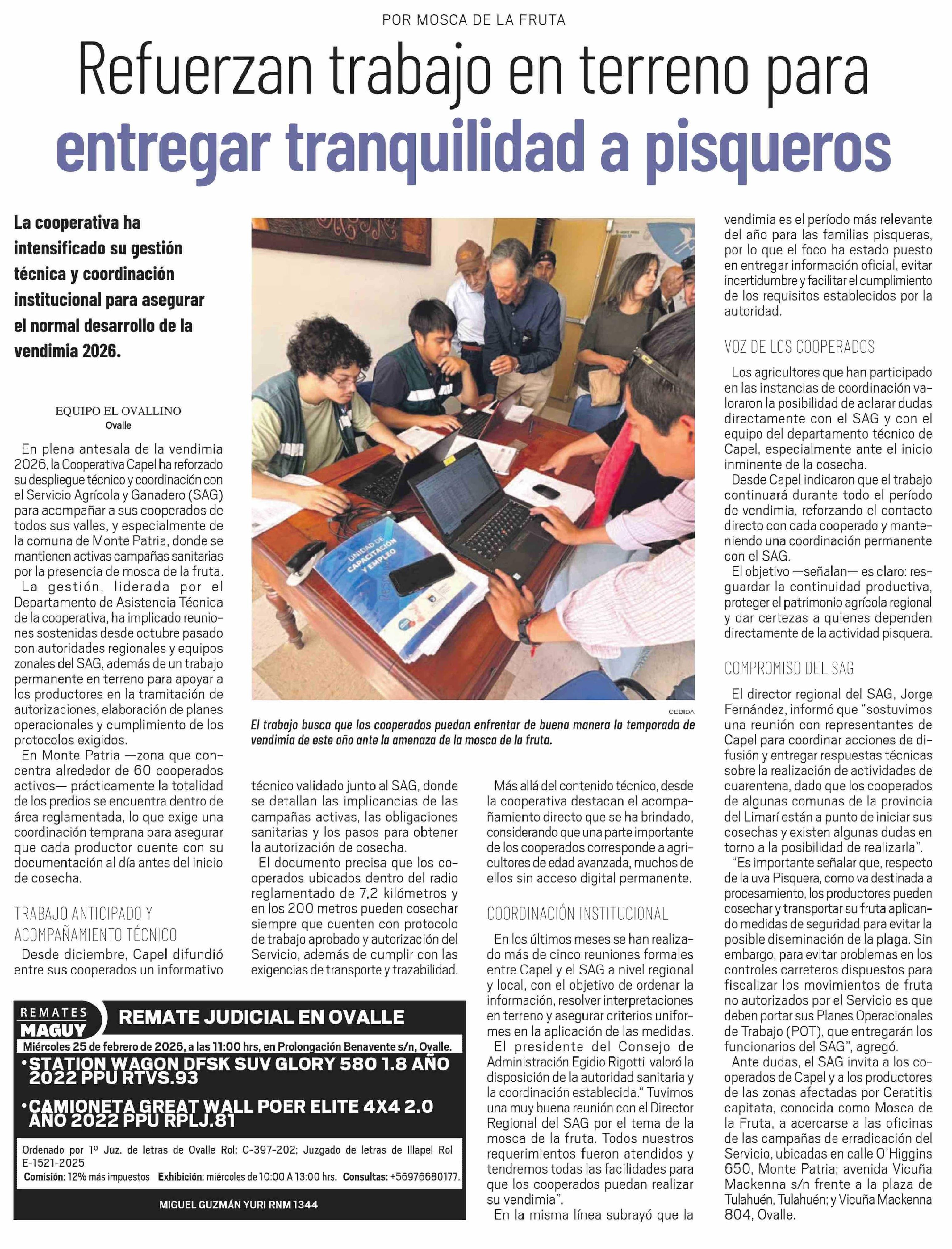Refuerzan trabajo en terreno para entregar tranquilidad a pisqueros 22-02-2026 El Ovallino |
