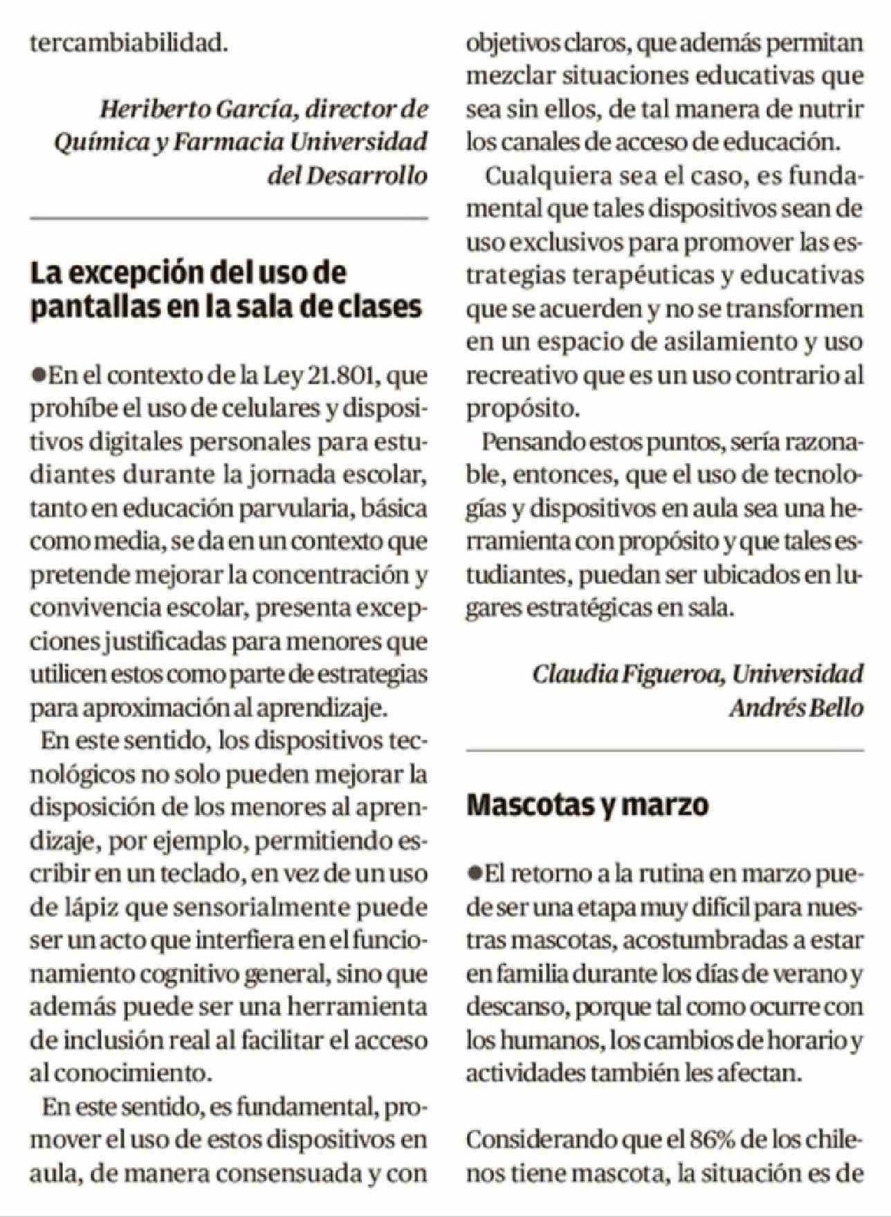 Cartas: La excepción del uso de pantallas en la sala de clases 18-03-2026 Crónica de Chillán |