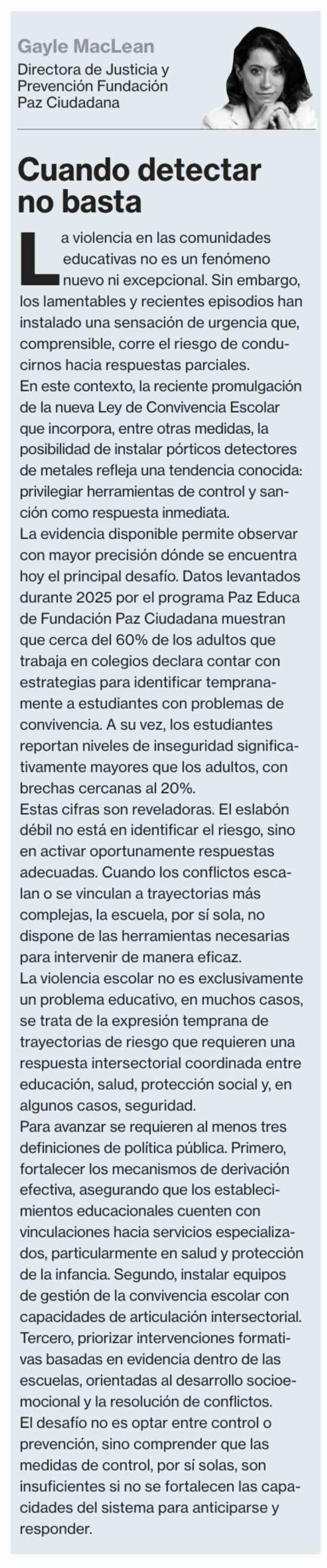 Título: Columnas de Opinión: Cuando detectar no basta