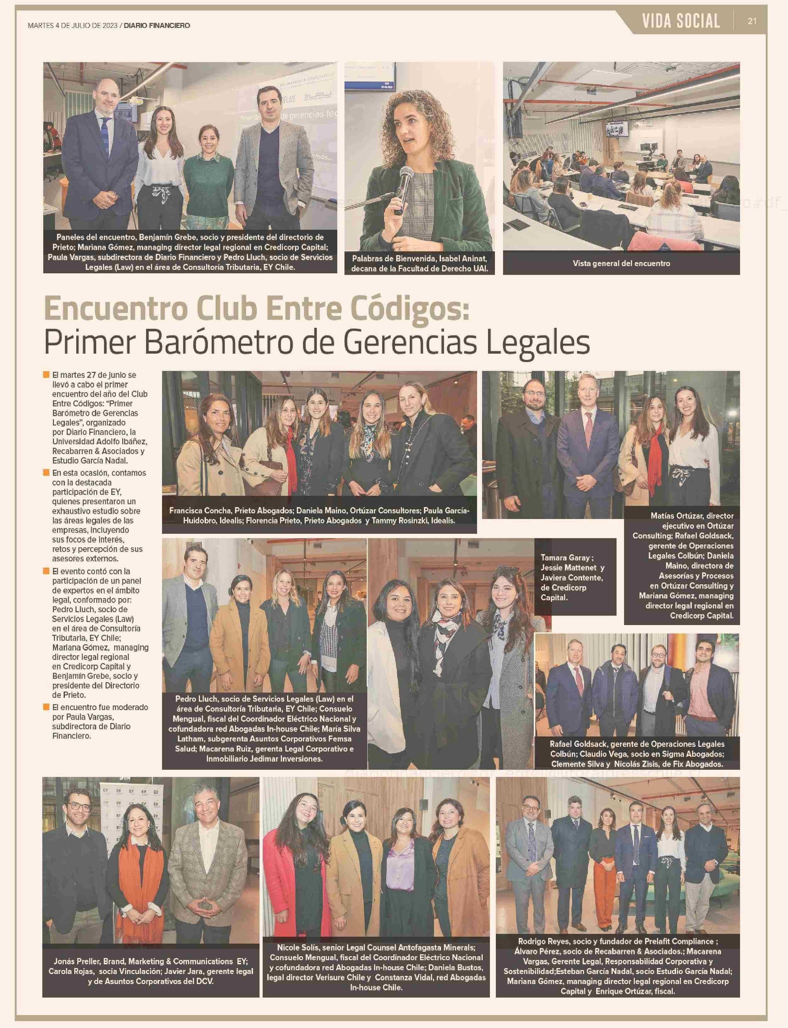 Encuentro Club Entre Códigos: Primer Barómetro de Gerencias Legales 04-07-2023 Diario Financiero |