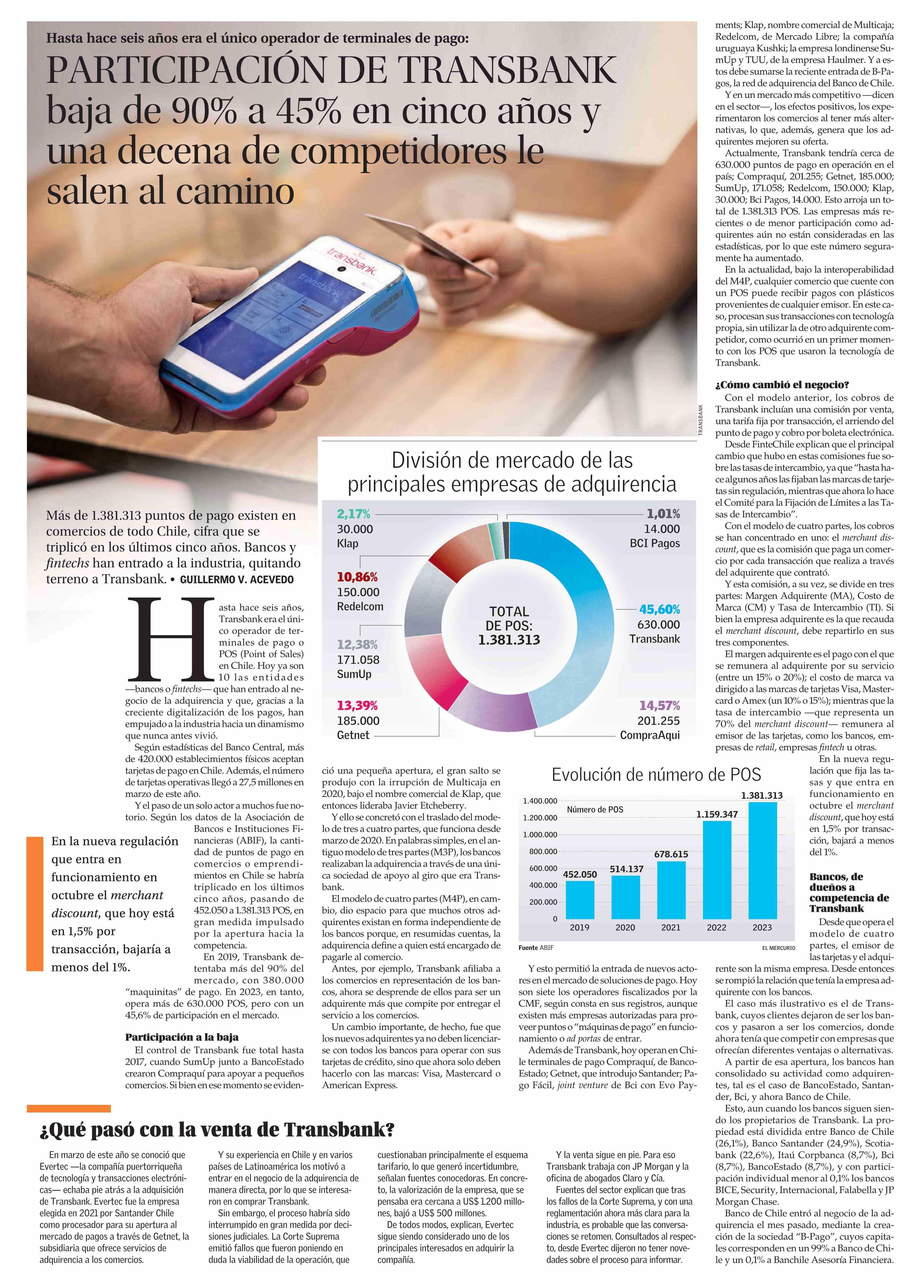 PARTICIPACIÓN DE TRANSBANK baja de.90% a 45% en cinco años y una decena de competidores le salen al camino 25-08-2024 El Mercurio |