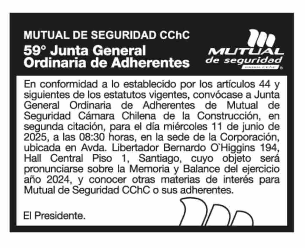 EXTRACTOS: MUTUAL DE SEGURIDAD CChC 29-05-2025 La Tercera |