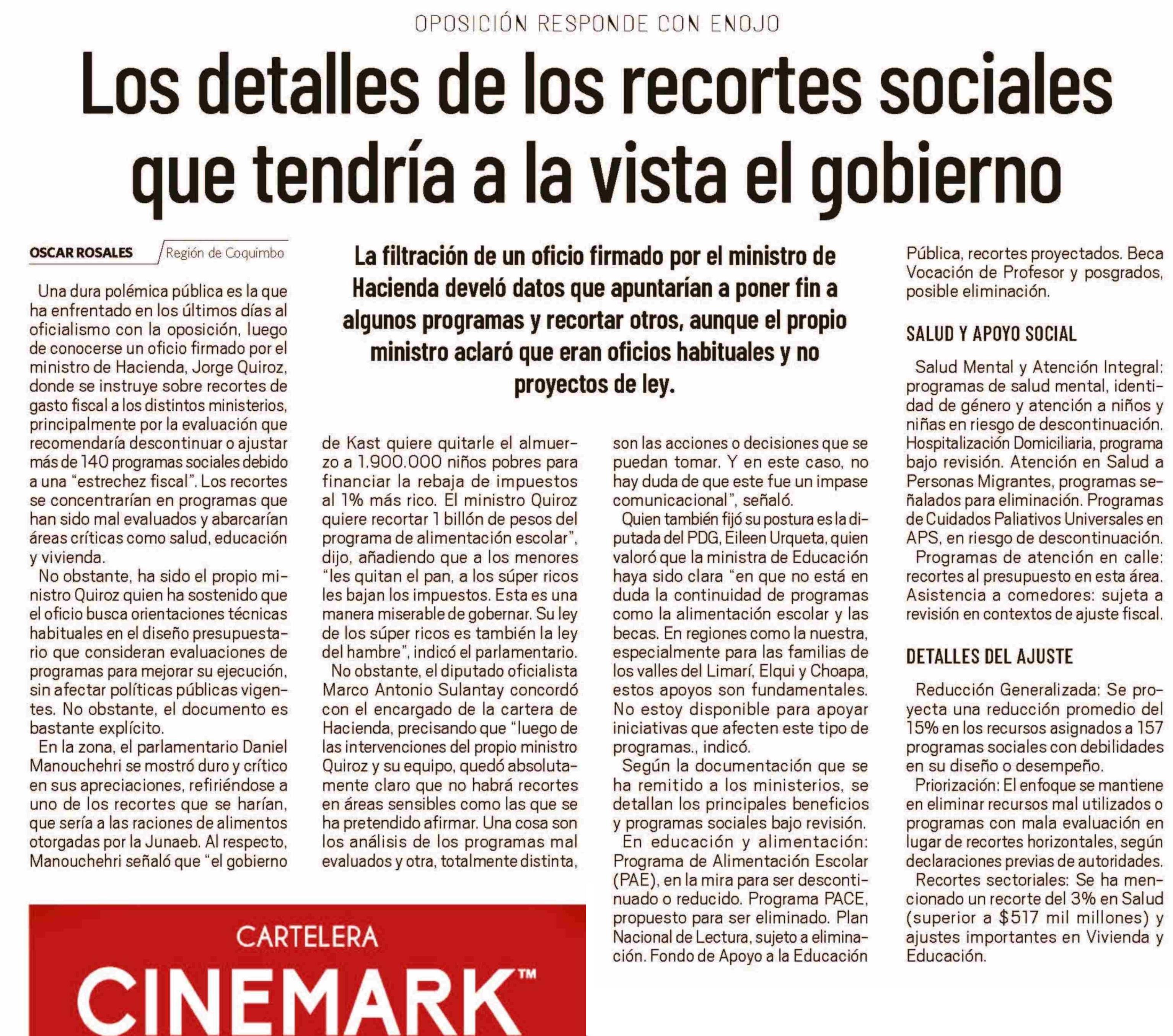 Los detalles de los recortes sociales que tendría a la vista el gobierno 27-04-2026 El Día |