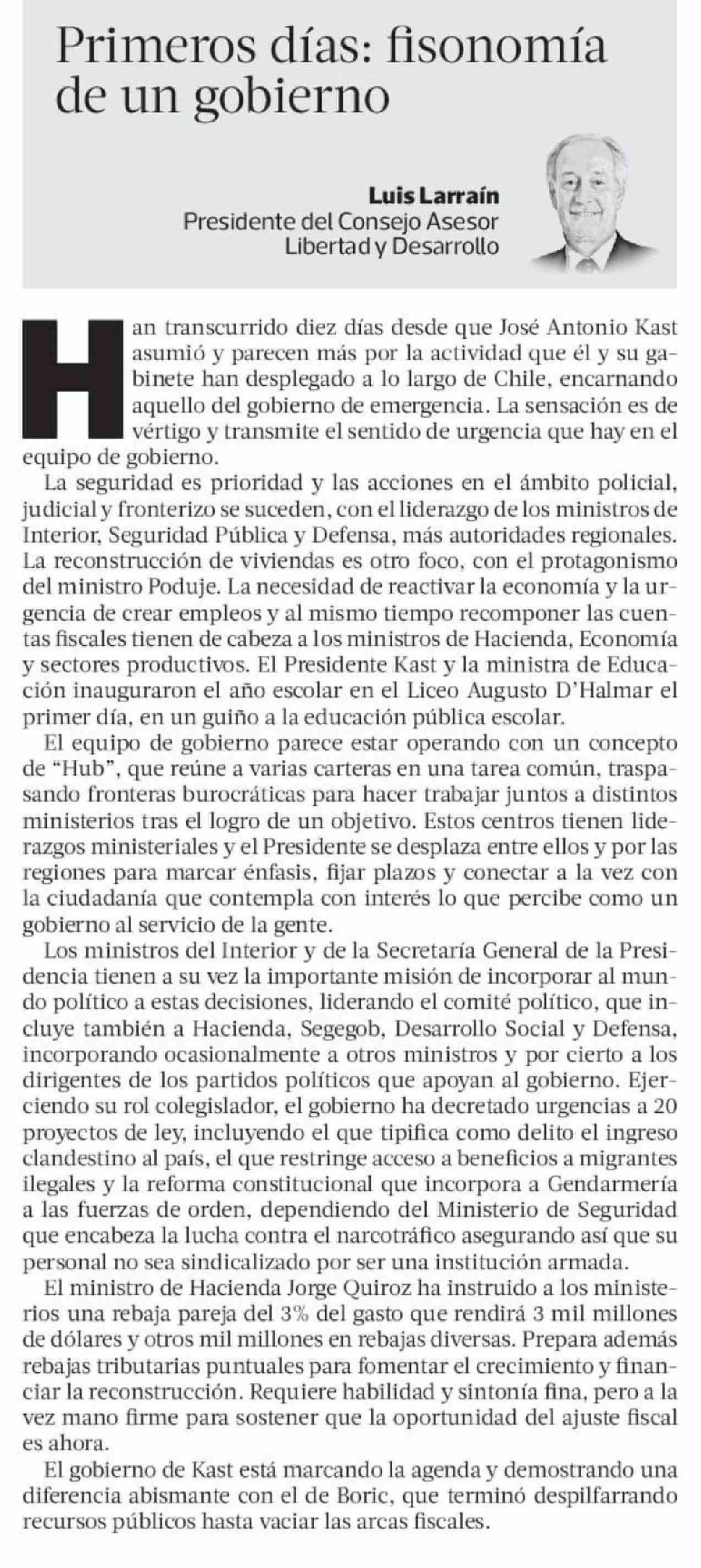 Columnas de Opinión: Primeros días: fisonomía de un gobierno