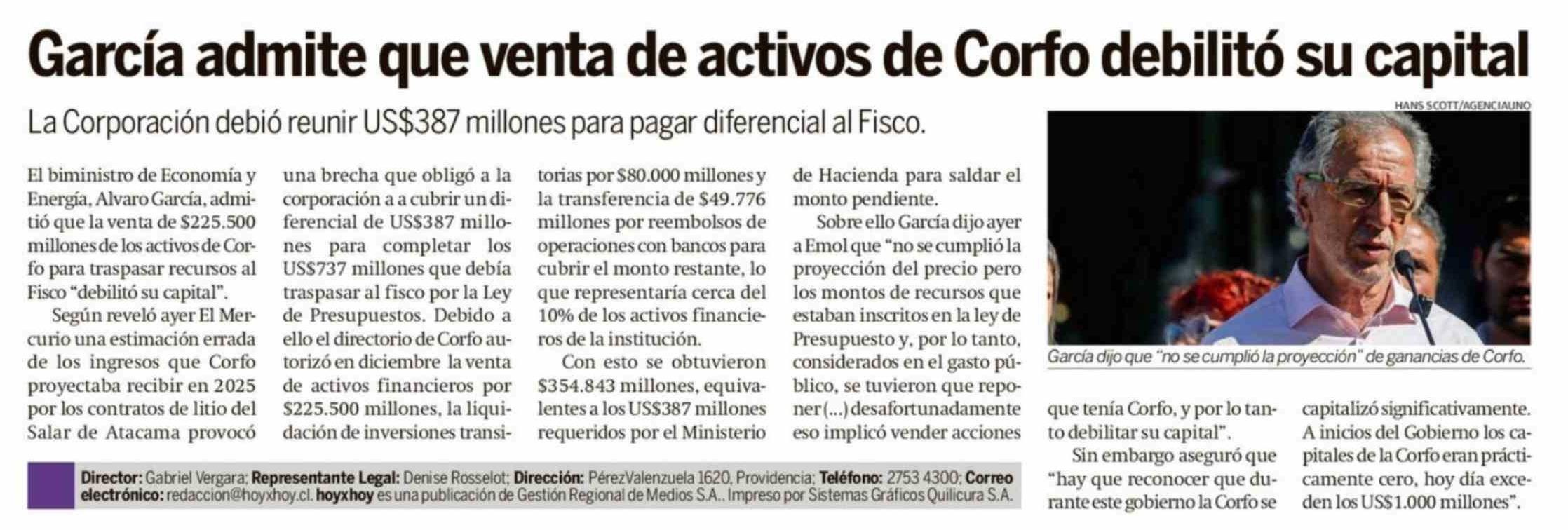 Título: García admite que venta de activos de Corfo debilitó su capital