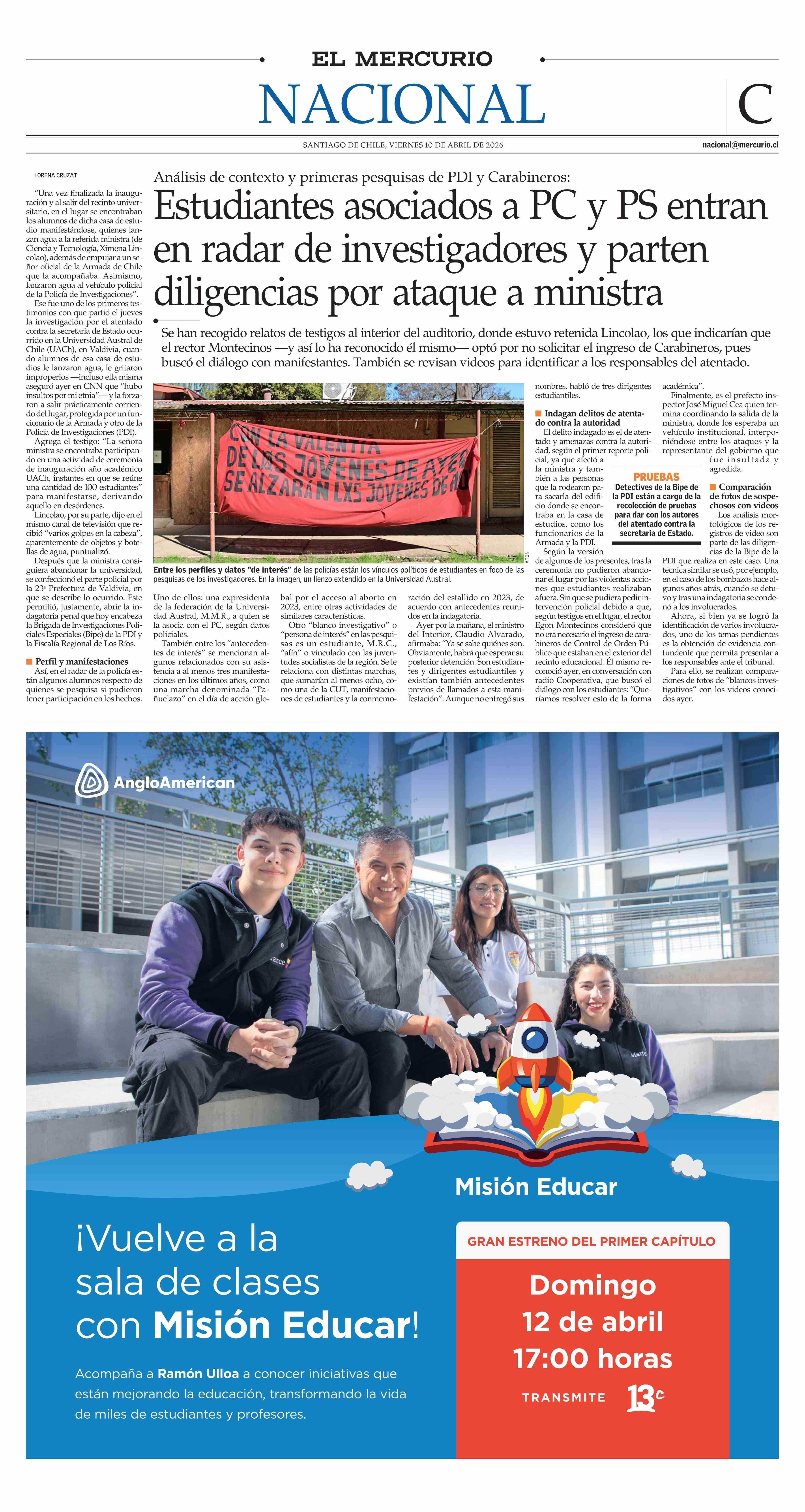 Fecha: 10-04-2026 Sector: Portada Región: Región Metropolitana de Santiago