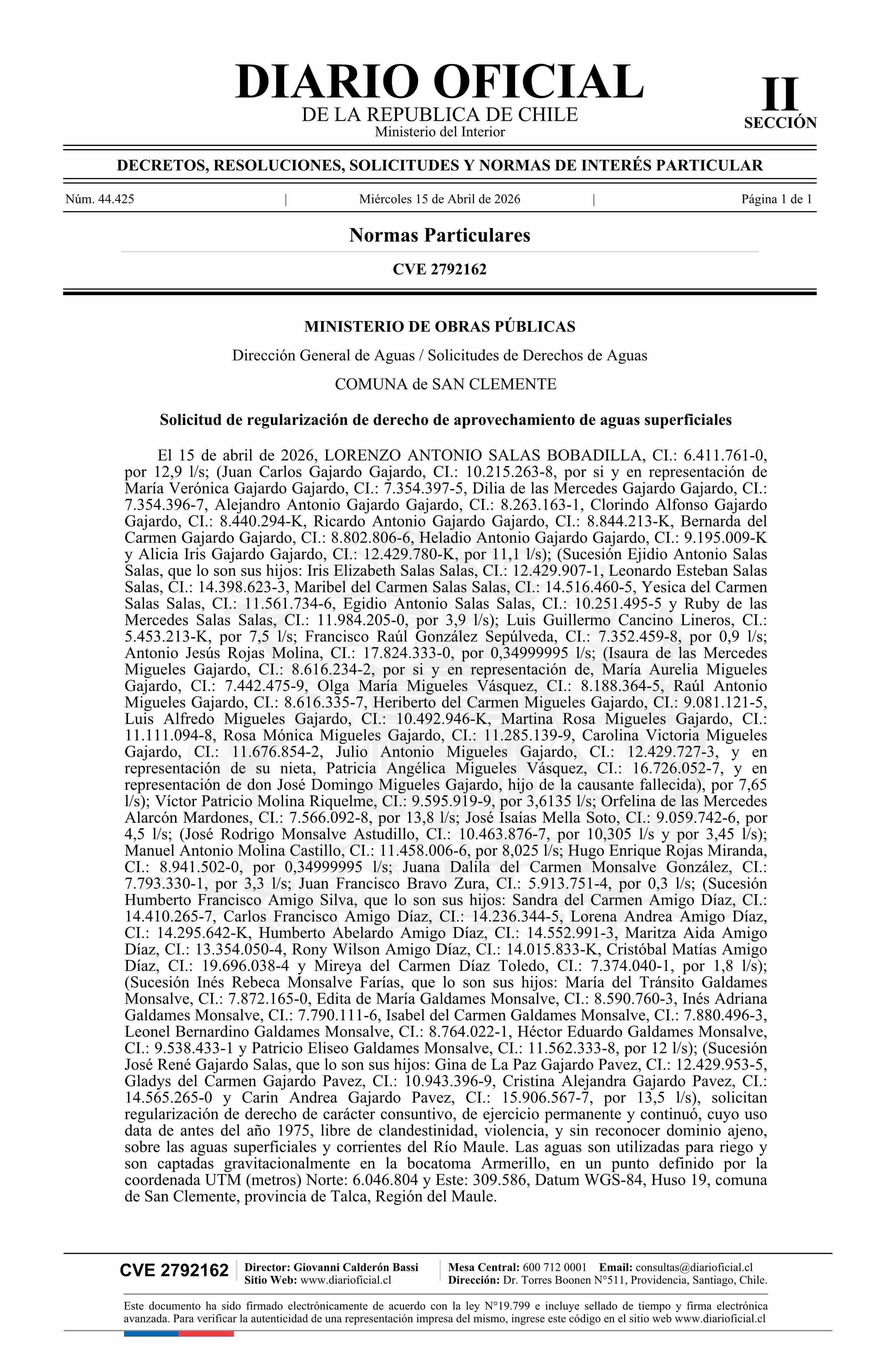 Solicitud Salas Bobadilla Lorenzo Antonio 15-04-2026 Diario Oficial Edición Electrónica |