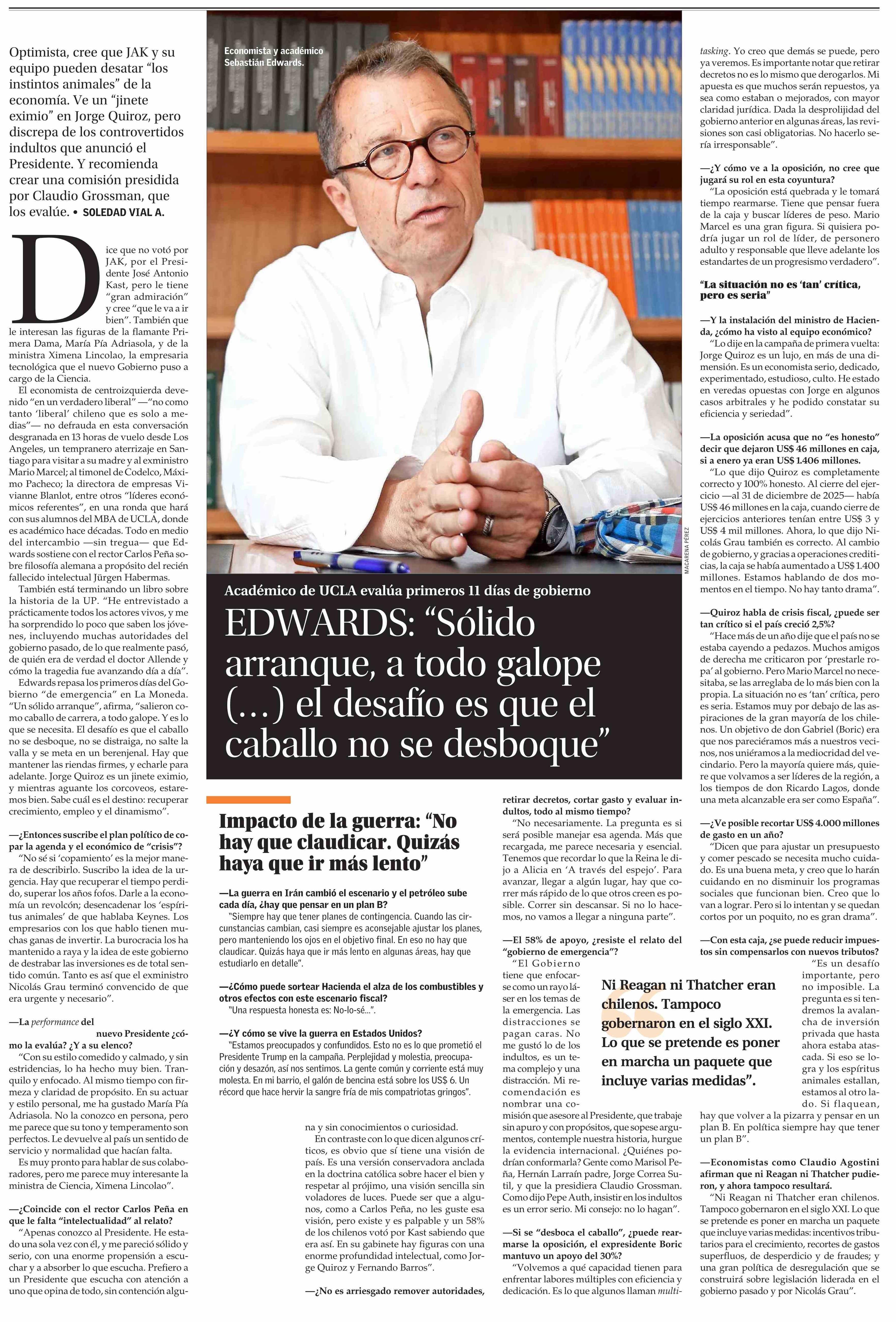 EDWARDS: “Sólido arranque, a todo galope (…) el desafío es que el caballo no se desboque” 22-03-2026 El Mercurio |