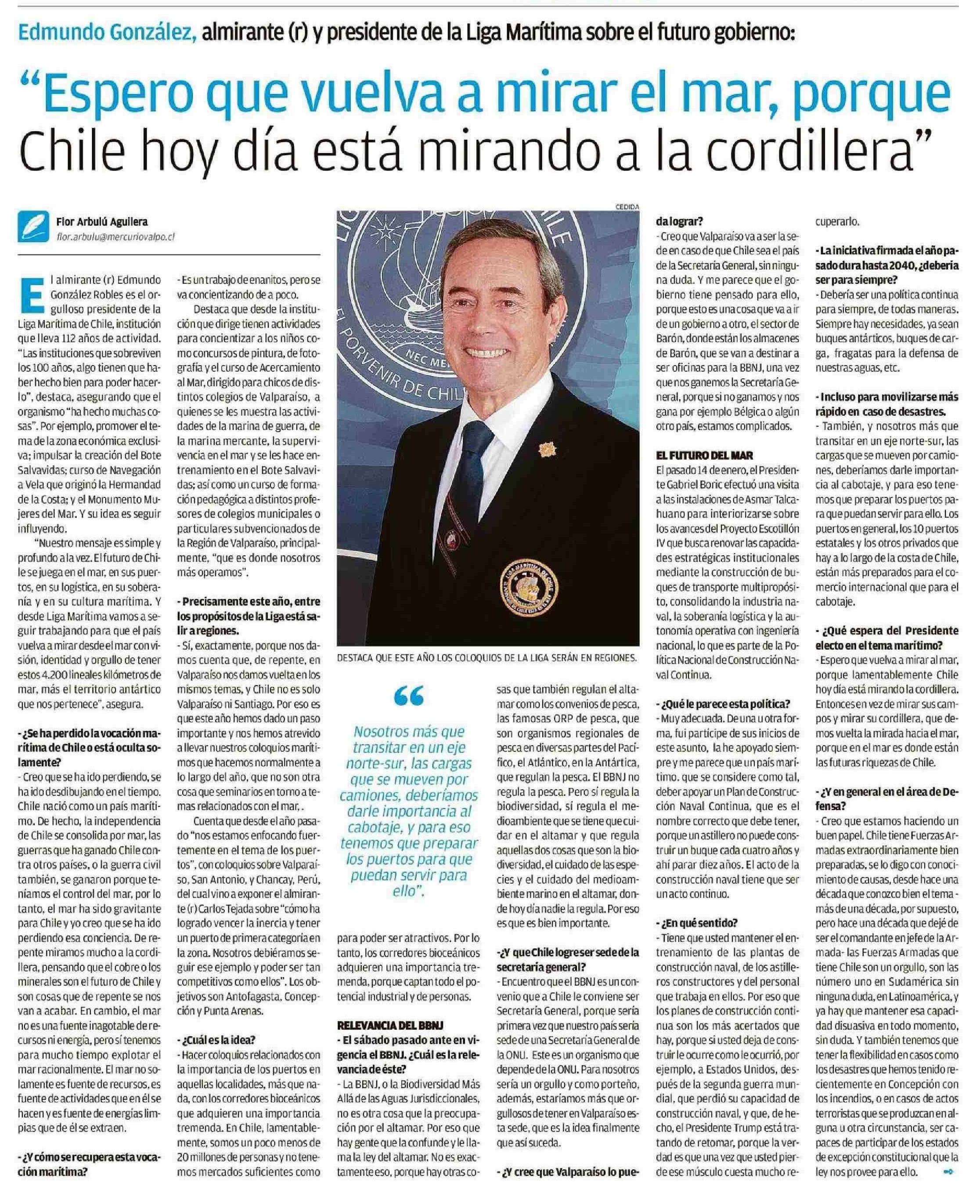 Título: "Espero que vuelva a mirar el mar, porque Chile hoy día está mirando a la cordillera"