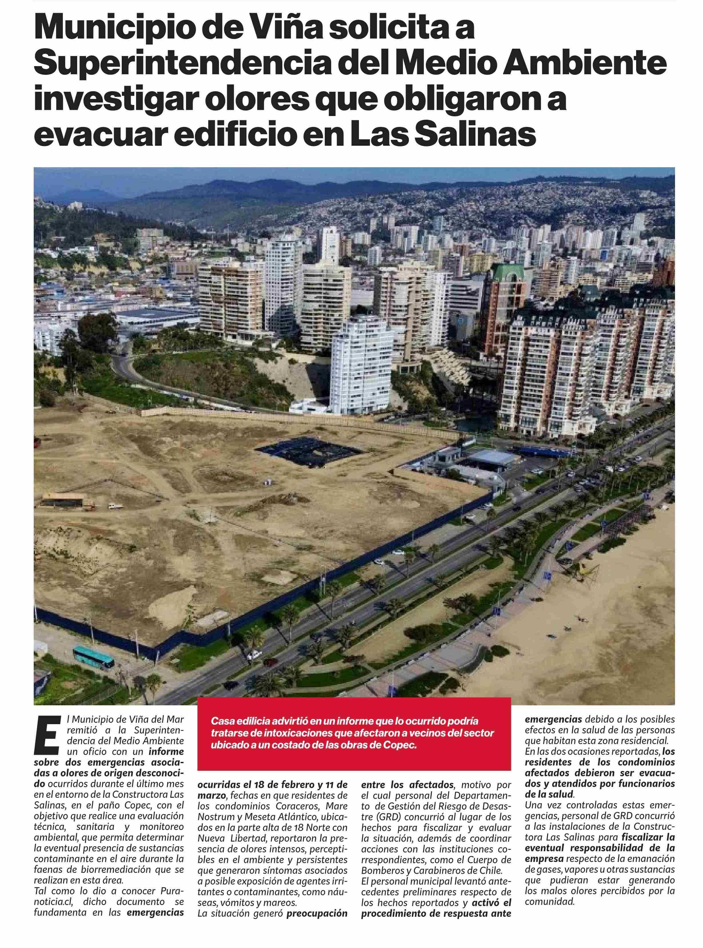 Título: Municipio de Viña solicita a Superintendencia del Medio Ambiente investigar olores que obligaron a evacuar edificio en Las Salinas