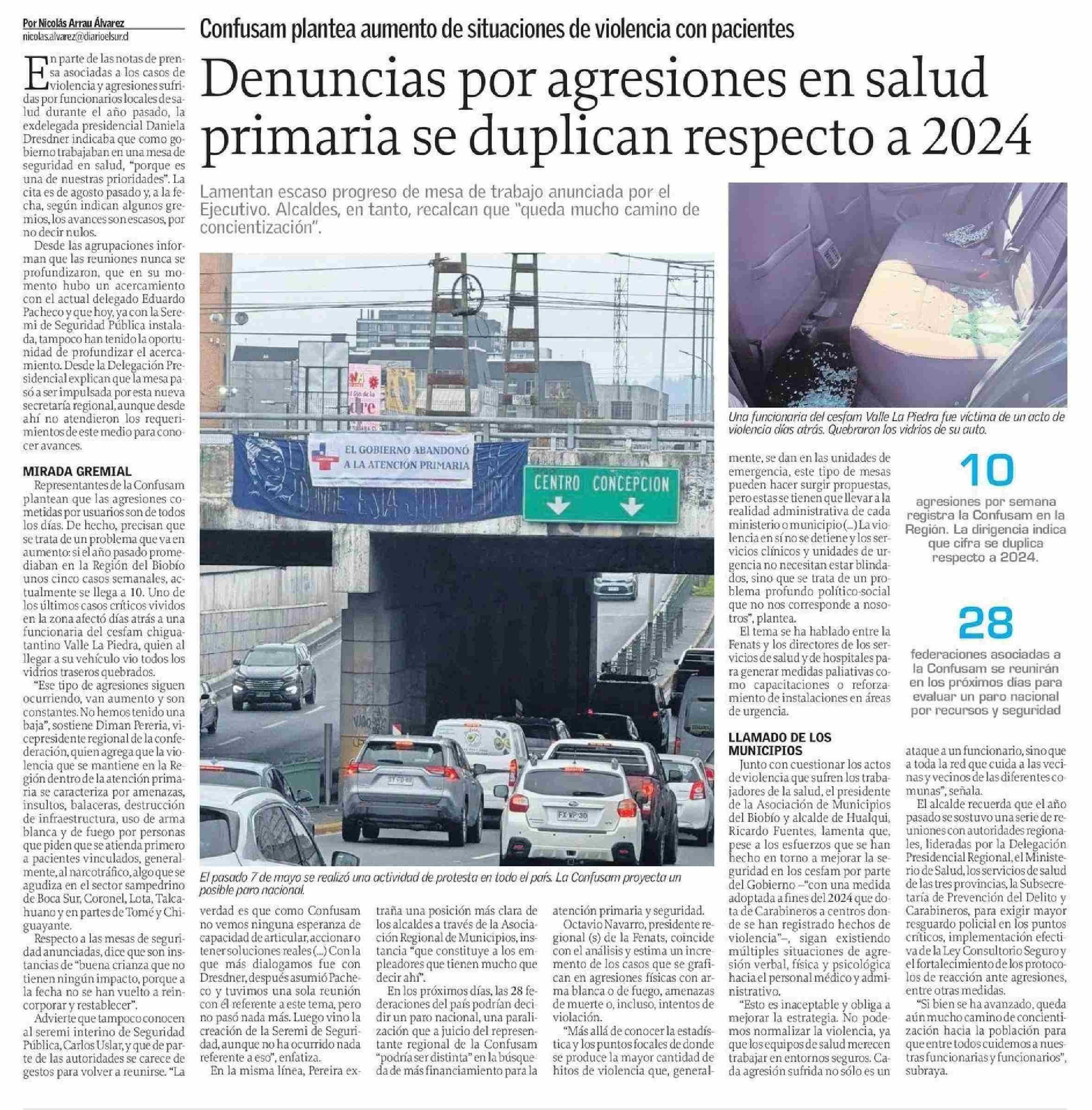 Denuncias por agresiones en salud primaria se duplican respecto a 2024 26-05-2025 El Sur |