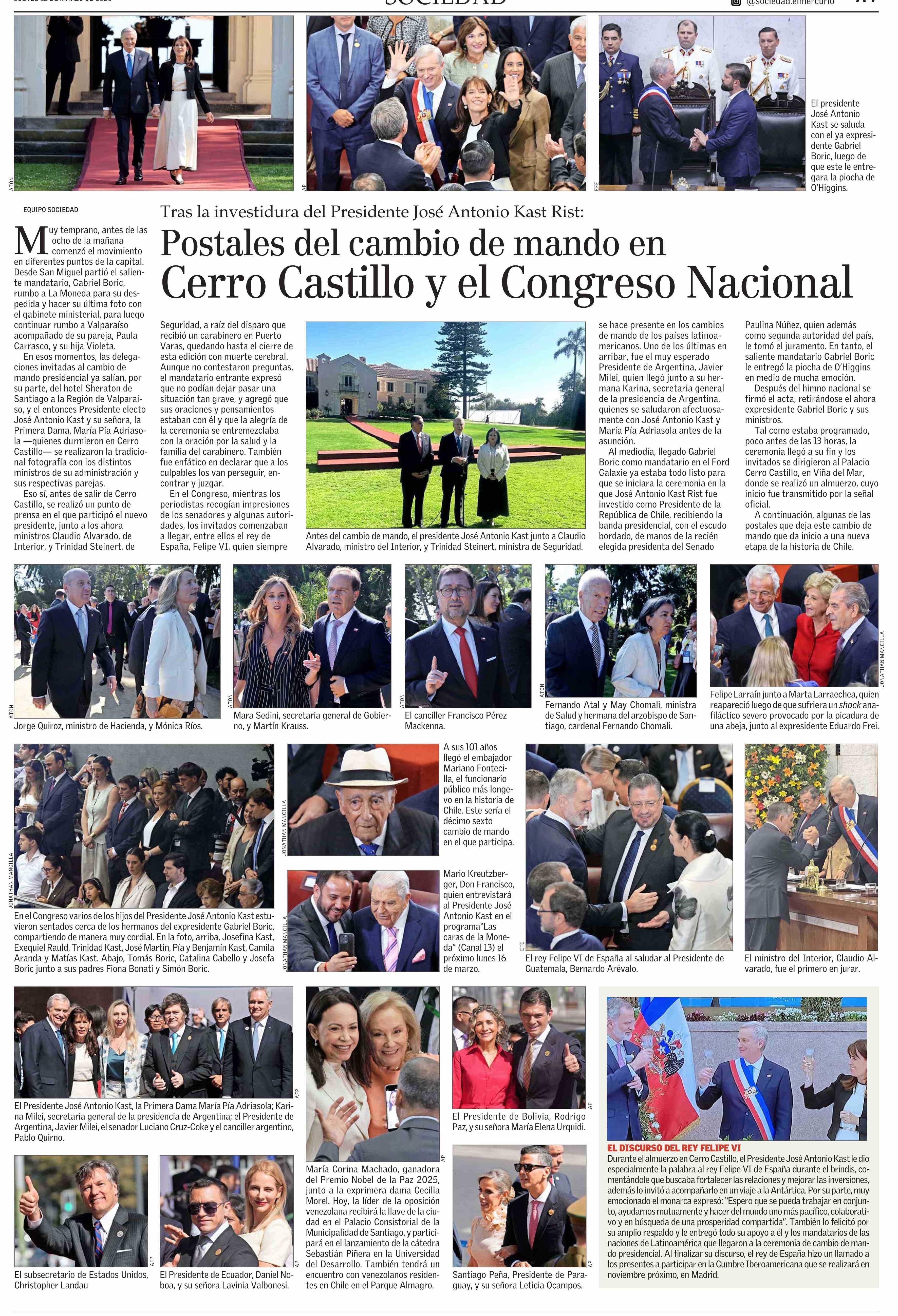 Postales del cambio de mando en Cerro Castillo y el Congreso Nacional 12-03-2026 El Mercurio |