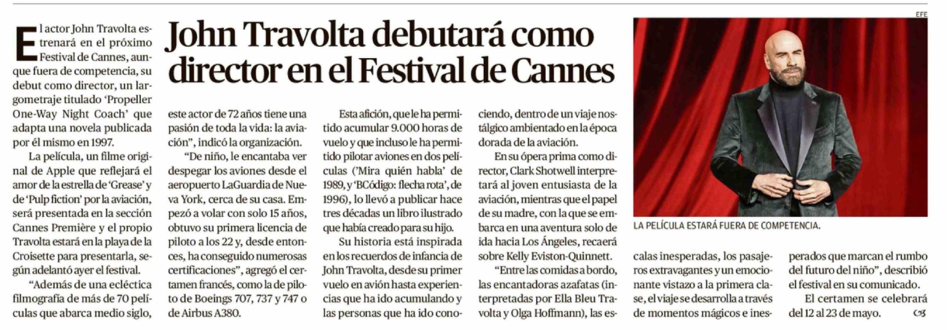| Título: | John Travolta debutará como director en el Festival de Cannes |