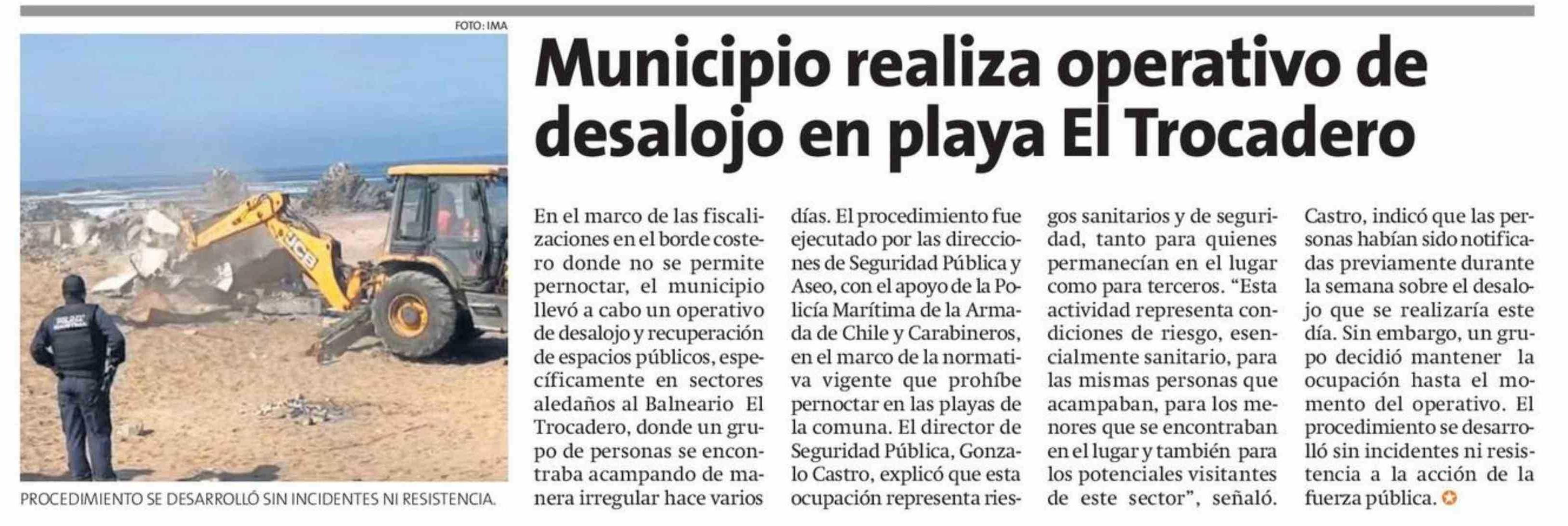 Título: Municipio realiza operativo de desalojo en playa El Trocadero