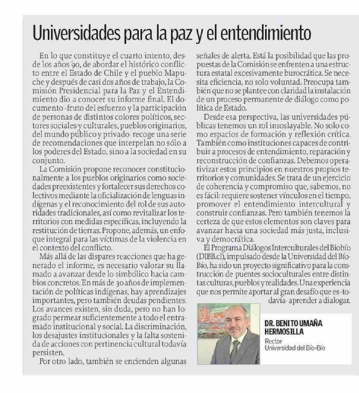 | Título: | COLUMNAS DE OPINIÓN: Universidades para la paz y el entendimiento |